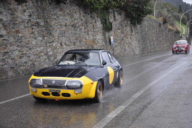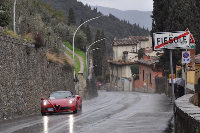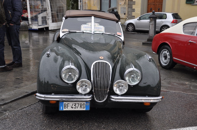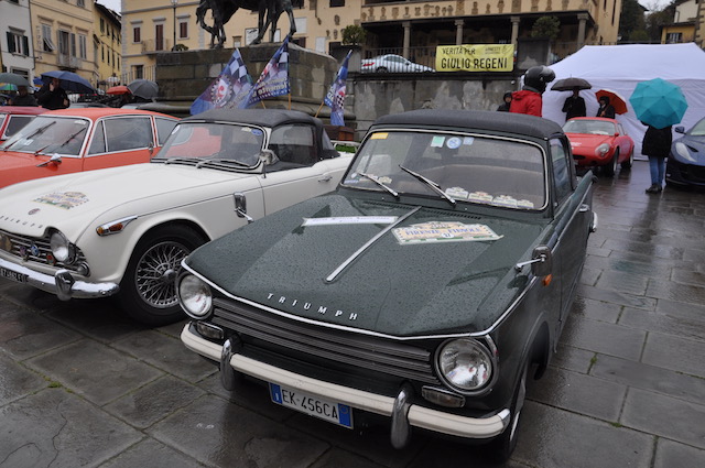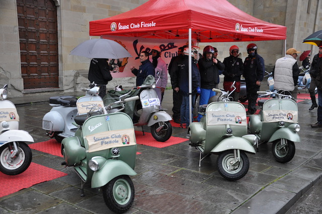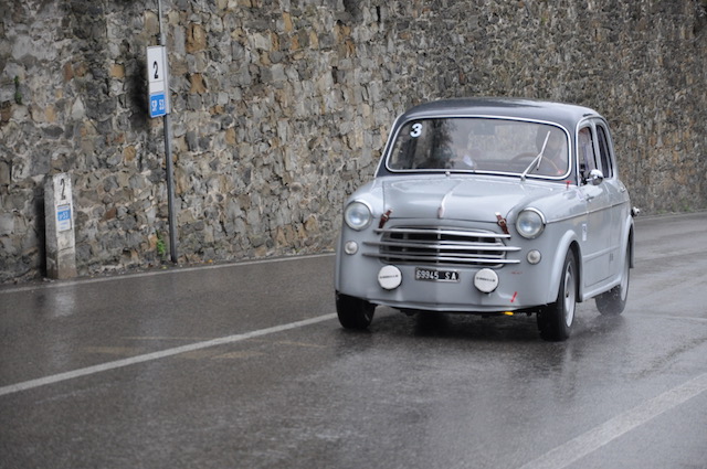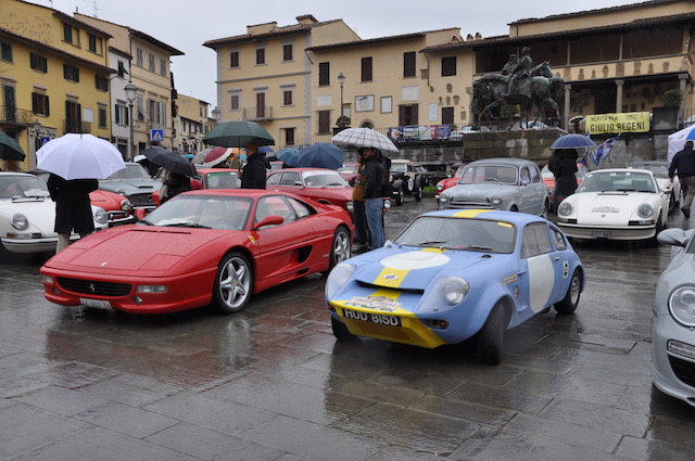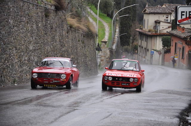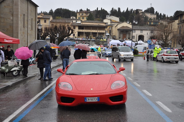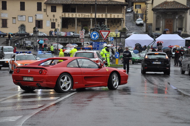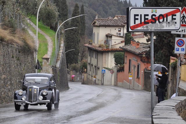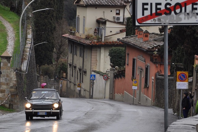 FIRENZE – Successo, nonostante la pioggia, della 12ª edizione della «Firenze-Fiesole», la classica di primavera per auto storiche, immatricolate fino al 1970. La corsa di regolarità si è svolta domenica 18 marzo, con la partecipazione di oltre cinquanta vetture. Dopo il raduno al piazzale Michelangelo, gli equipaggi si sono portati in piazza Edison, dove gli occhi non erano solo alle auto ma molti anche verso il cielo che non prometteva clemenza. C’è stato anche il rischio di una sospensione per un ulteriore peggioramento meteo, che per fortuna non si è avuto.