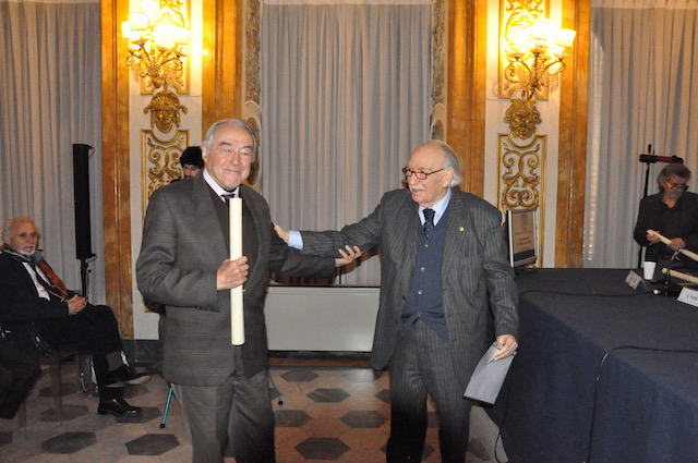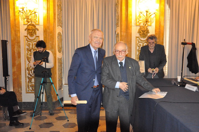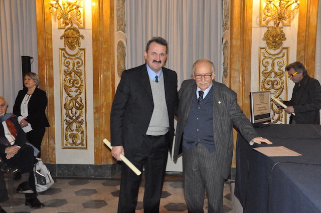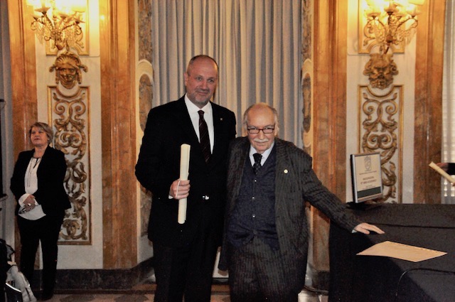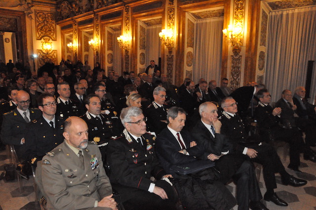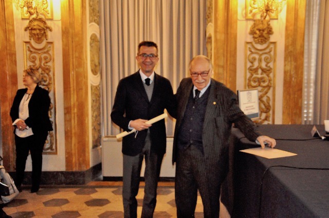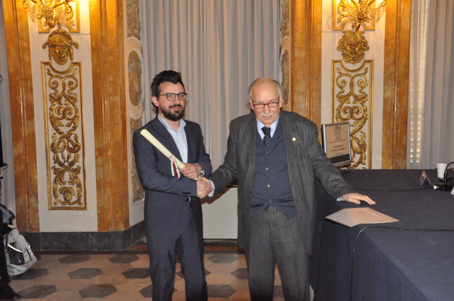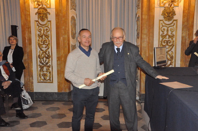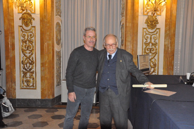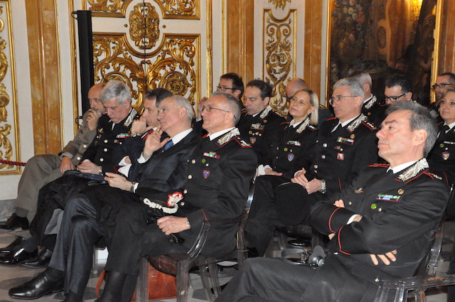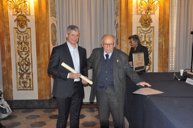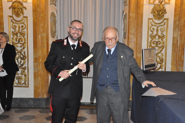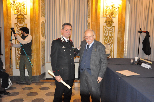 In prima fila c’è il generale di corpo d’armata Tullio Del Sette, già Comandane Generale dei Carabinieri fino al gennaio 2018, l’uomo cui è toccato il compito di «traghettare» i Forestali nell’Arma. Accanto a lui c’è Cesare Patrone, per 12 anni (dal 2004 al 2016) capo indiscusso del Corpo Forestale dello Stato. Entrambi, insieme al dottor Palahí, ricevono dalle mani del presidente Ciancio la nomina a Accademici onorari dell’Aisf.