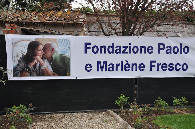 Ovunque si respira la presenza di Marlène, la signora Fresco scomparsa nel novembre 2015, vittima proprio del Parkinson. Sua una foto che giganteggia nella cappella delle Annunciazioni. Ma anche uno striscione nel giardino della villa con una foto della coppia e la scritta «Fondazione Paolo e Marlène Fresco». Ovunque anche tulipani arancioni, simbolo della guerra al Parkinson.