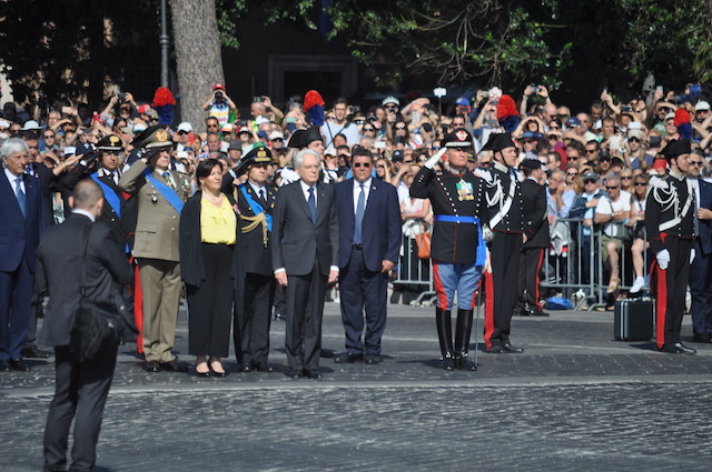 Molti gli applausi per il presidente della Repubblica Sergio Mattarella, accompagnato dalla neo ministro della Difesa Elisabetta Trenta, già attaccata dall’opposizione ma che si presenta sugli attenti e sfila a passo con il presidente. Ma la vera sorpresa è il bagno di folla che circonda il neo presidente del Consiglio Giuseppe Conte, ad appena 20 ore dal suo giuramento al Quirinale.