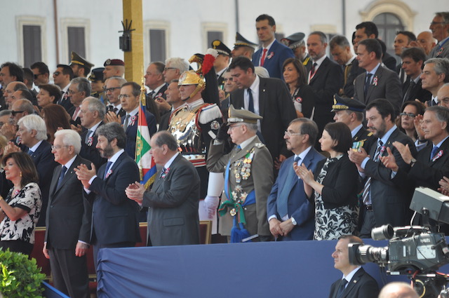 ROMA – Alla vigilia sembrava che la Festa della Repubblica 2018 a Roma dovesse essere una cerimonia a rischio contestazioni. Quella del 2 giugno si è come d’incanto trasformata in un’applauditissima manifestazione seguita anche da milioni di persone attraverso la televisione e i social network. Merito quasi certamente della soluzione della crisi di governo, arrivata last minute. E che ha cambiato le presenze più importanti sul palco presidenziale lungo i Fori Imperiali. Assenti Grasso, Boldrini, Gentiloni. Al loro posto Casellati, Fico, Conte. Con Di Maio e Salvini quasi ai lati. Tutti con una coccarda tricolore.