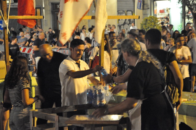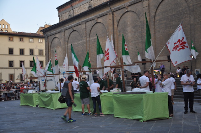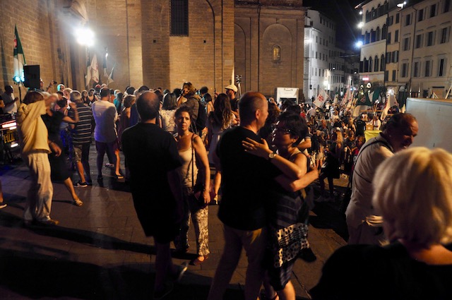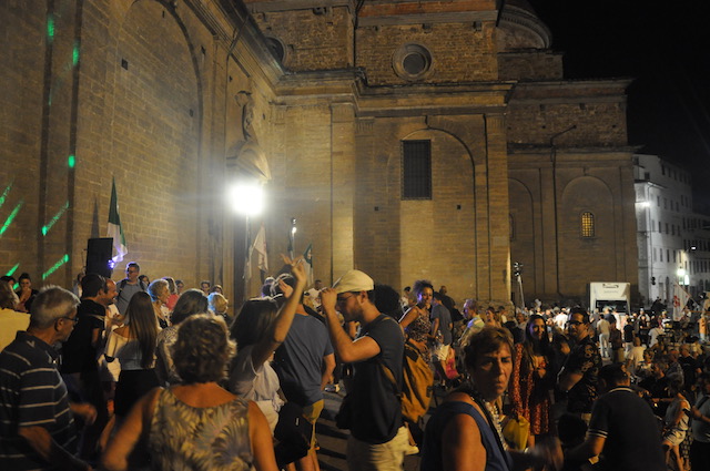 Al termine la festa si è spostata sul lato del sagrato lungo la piazza, dove – come tradizione – gli esercenti commerciali della zona di San Lorenzo hanno offerto una cena alla cittadinanza. «Oltre tremila pasti e due tonnellate di cocomero» ha commentato alla fine Aldo Cursano, presidente di Confcommercio di Firenze e titolare di un noto esercizio del quartiere. Non è mancata musica fino a tardi, dove molti cittadini si sono esibiti in danze sul sagrato. Tra questi nelle prime ore anche una coppia di ballerini di eccezione: il sindaco Dario Nardella e la vice sindaco Cristina Giachi, mentre alcuni assessori servivano la cena alla gente assiepata dietro le transenne.