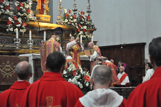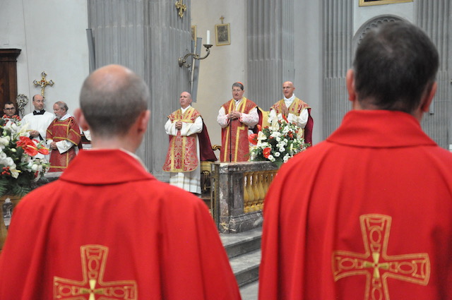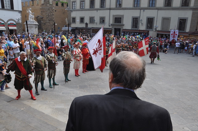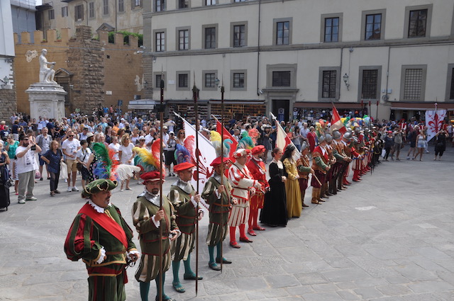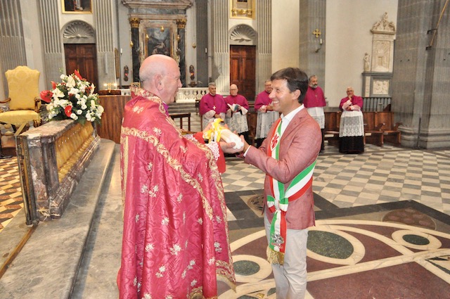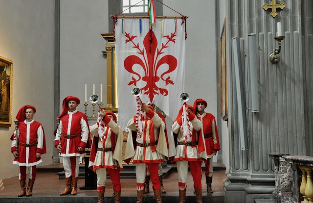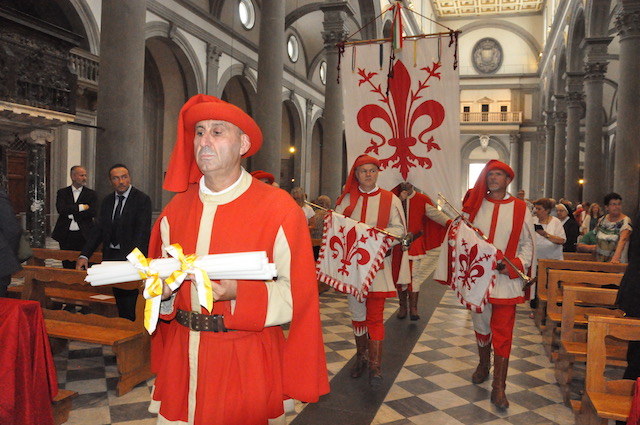 La celebrazione in San Lorenzo è stata preceduta dall’arrivo nella piazza del Gonfalone di Firenze accompagnato dal Corteo del Calcio storico fiorentino. Come vuole la tradizione sono stati portati in corteo i «ceri» per la cerimonia che vengono donati dal Comune di Firenze alla Basilica del santo, in analogia a quanto avviene per la festa di San Giovanni (24 giugno) in Duomo e di Sant’Anna (26 luglio) in Orsanmichele.