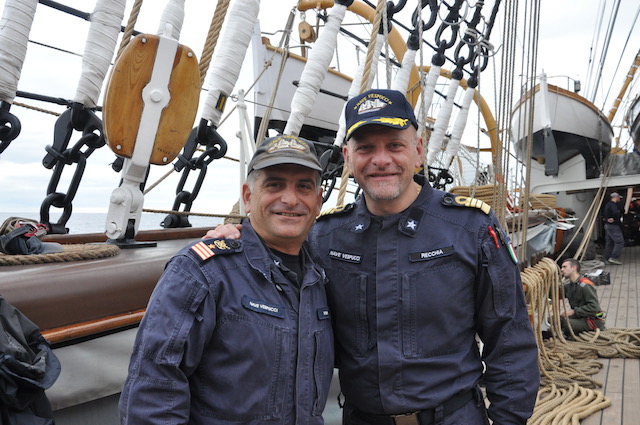 Durante la chiaccherata, passa sul ponte il comandante del Vespucci, capitano di vascello Roberto Recchia. «Il nostromo? È un riferimento, una spalla, un supporto, la storia. La persona che a un comandante non deve mai mancare, specie in riferimento ad un Nostromo come lui». Recchia e D’Elia si conoscono da circa 30 anni. Sono parole sentite e convinte, anche perché nel vocabolario di nessuno dei due esiste la parola piaggeria.