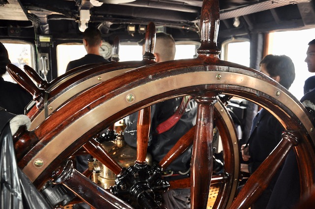 «Ho fatto più di venti campagne d’istruzione per gli Allievi dell’Accademia Navale, ma questa sarà l’ultima» dice il Nostromo sul cassero (il ponte di poppa) del Vespucci, durante la navigazione dalla Gran Bretagna alla Francia. E mentre parla non riesce a staccare gli occhi dal lavoro dei suoi nocchieri. Una squadra di un centinaio di uomini e donne, pronti giorno e notte a salire come scoiattoli sugli alberi della nave e gestire le 24 vele del leggendario vascello italiano. Impegnati, come i colleghi di ogni nave militare, anche nelle manovre di ormeggio e disormeggio da un porto. Come nel caso – capitato proprio all’arrivo a La Rochelle in Francia – dell’attraversamento di uno strettissimo canale, dove a ciascun bordo del Vespucci (lungo 101 metri e con 4000 tonnellate di stazza) non c’erano più di tre metri a disposizione per sfilare indenne senza fare e subire danni. Una manovra chirurgica.