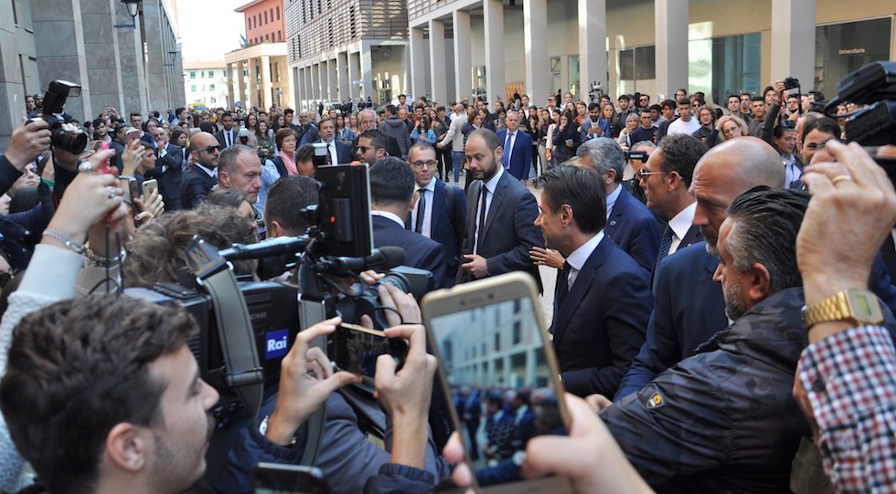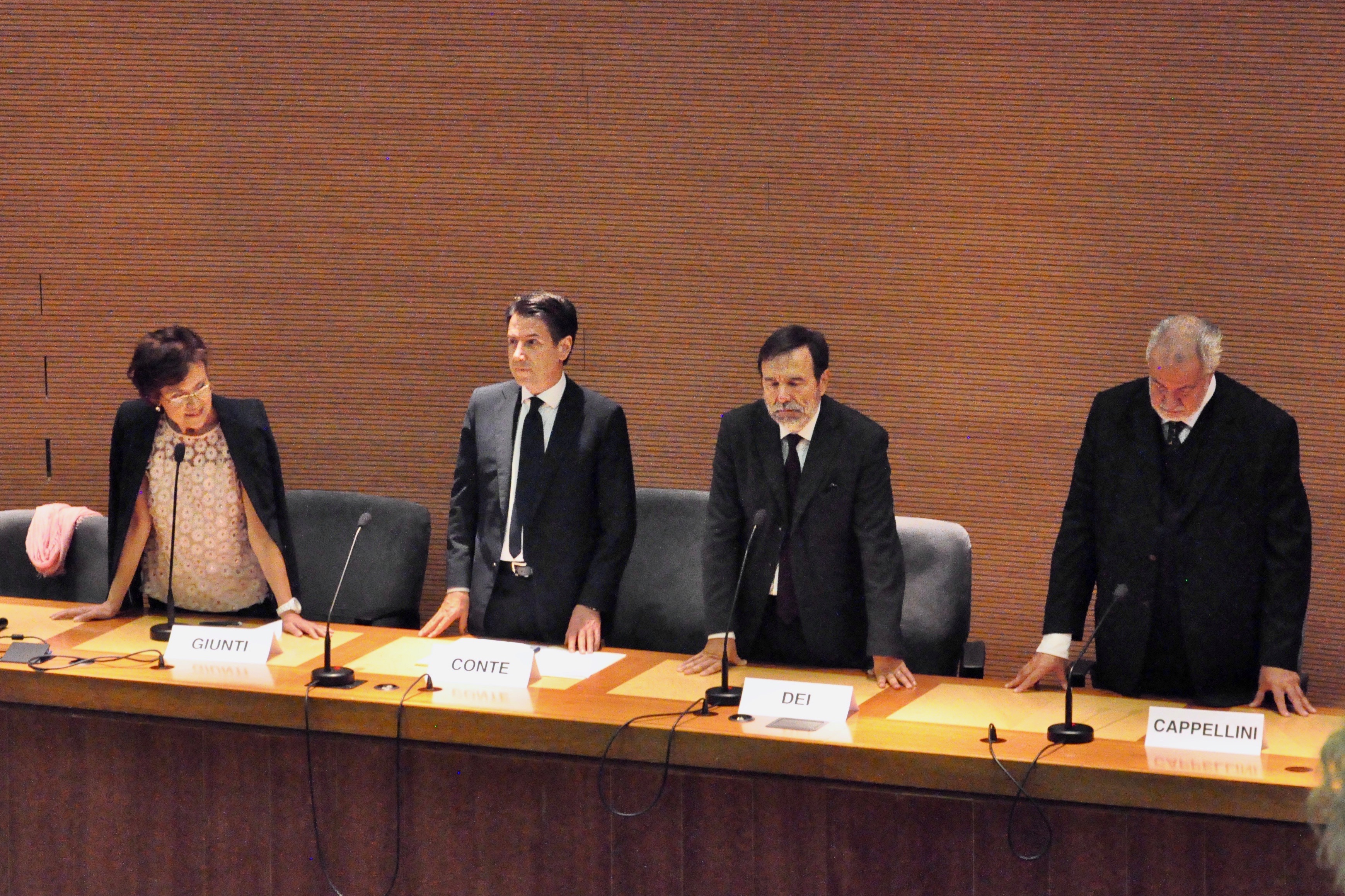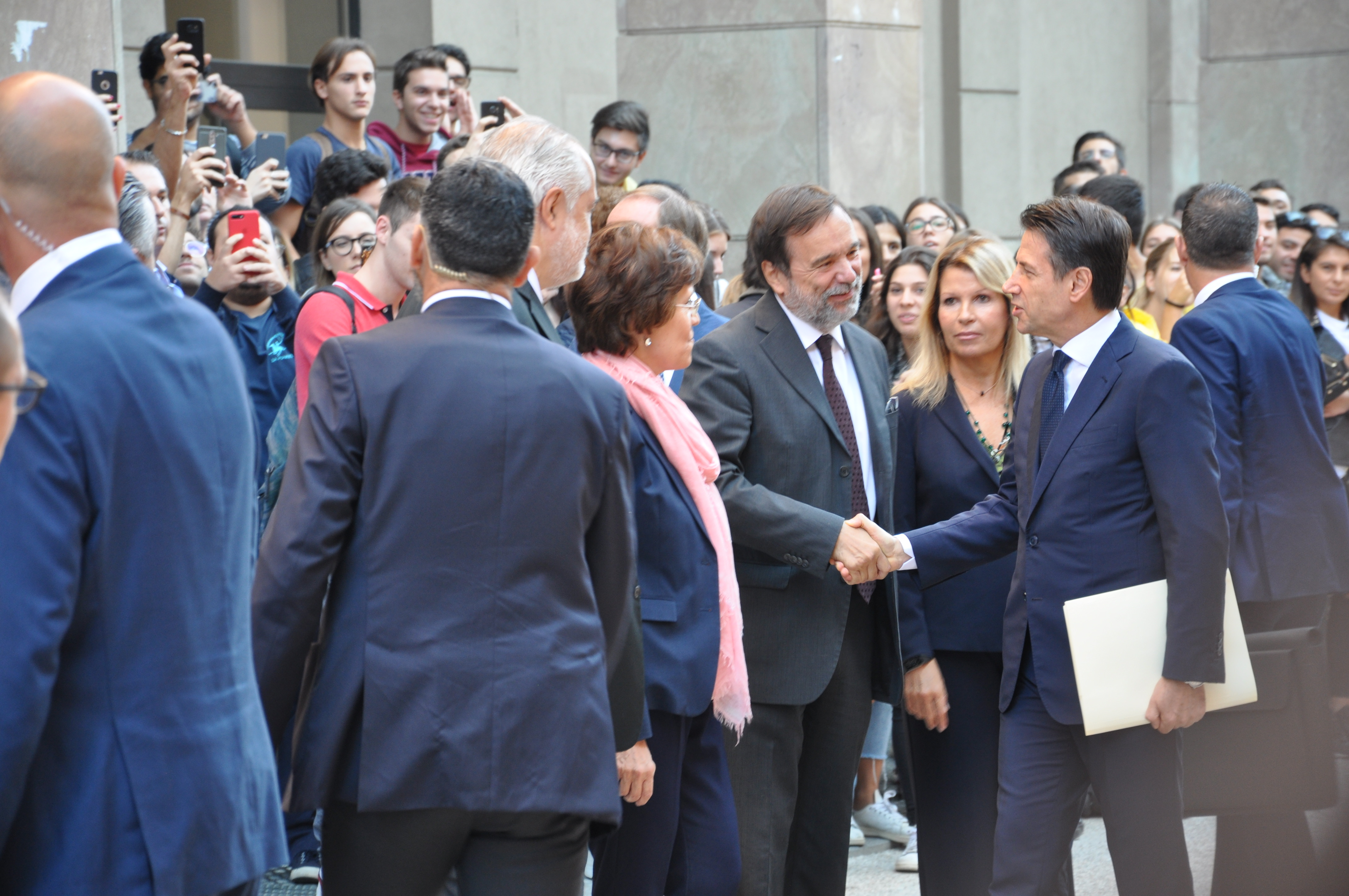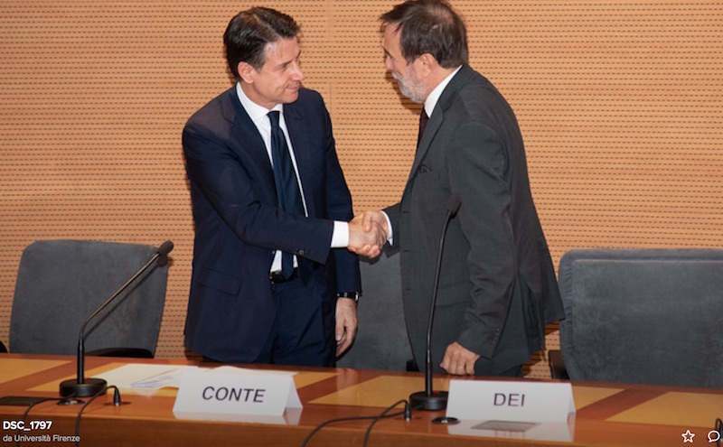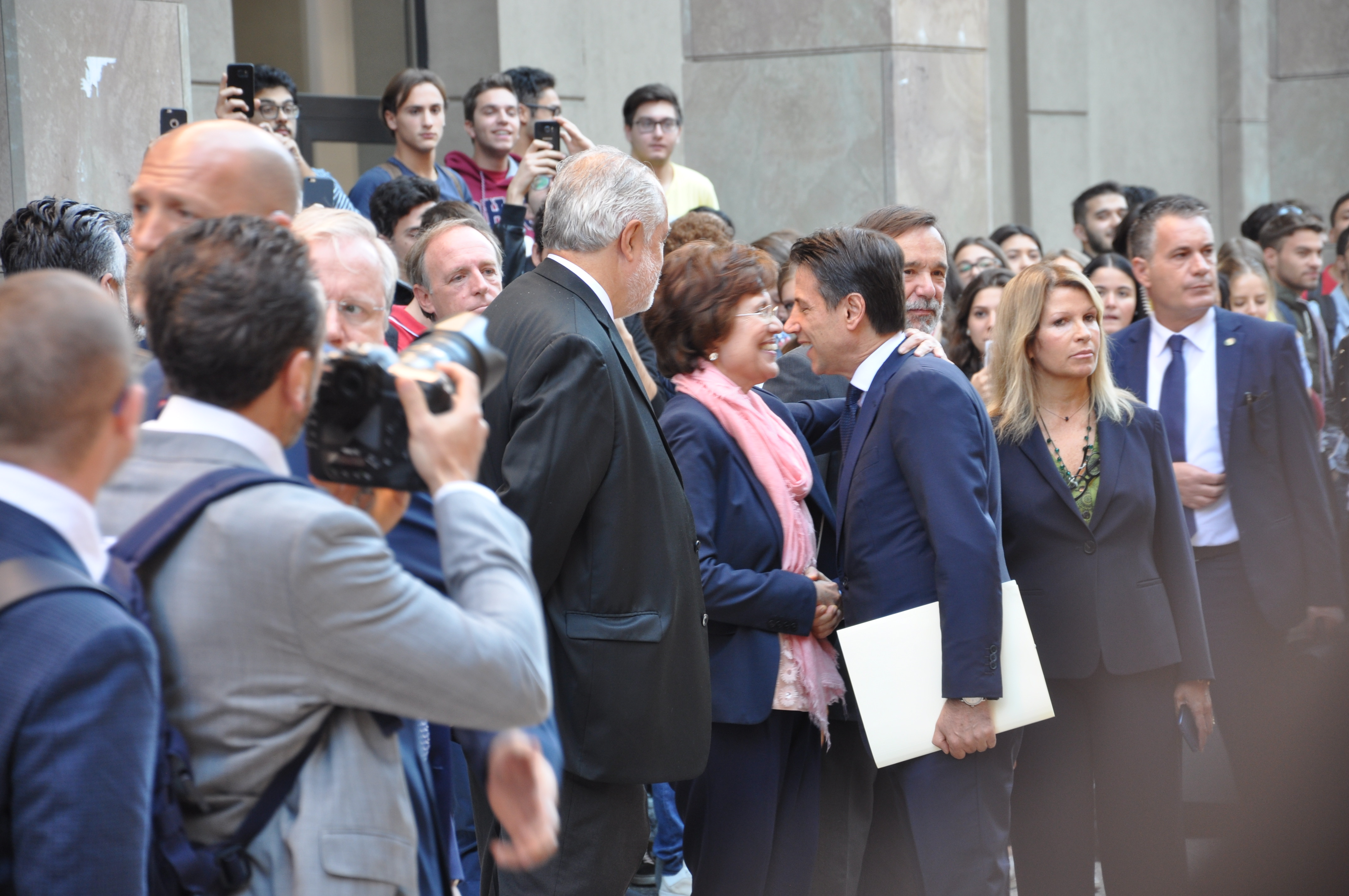Giornata fiorentina quella di martedì 9 ottobre per Conte, arrivato in auto da Roma puntuale alle 10,30. Davanti alle palazzine di Giurisprudenza, dove è ancora docente di diritto privato (naturalmente in aspettativa), c’è ad attenderlo il prefetto di Firenze Laura Lega. Con lei il rettore dell’Università degli Studi Luigi Dei e i colleghi del Dipartimento di Scienze Giuridiche, il presidente della Scuola di Giurisprudenza Paolo Cappellini e il direttore del Dipartimento di Scienze Giuridiche Patrizia Giunti.