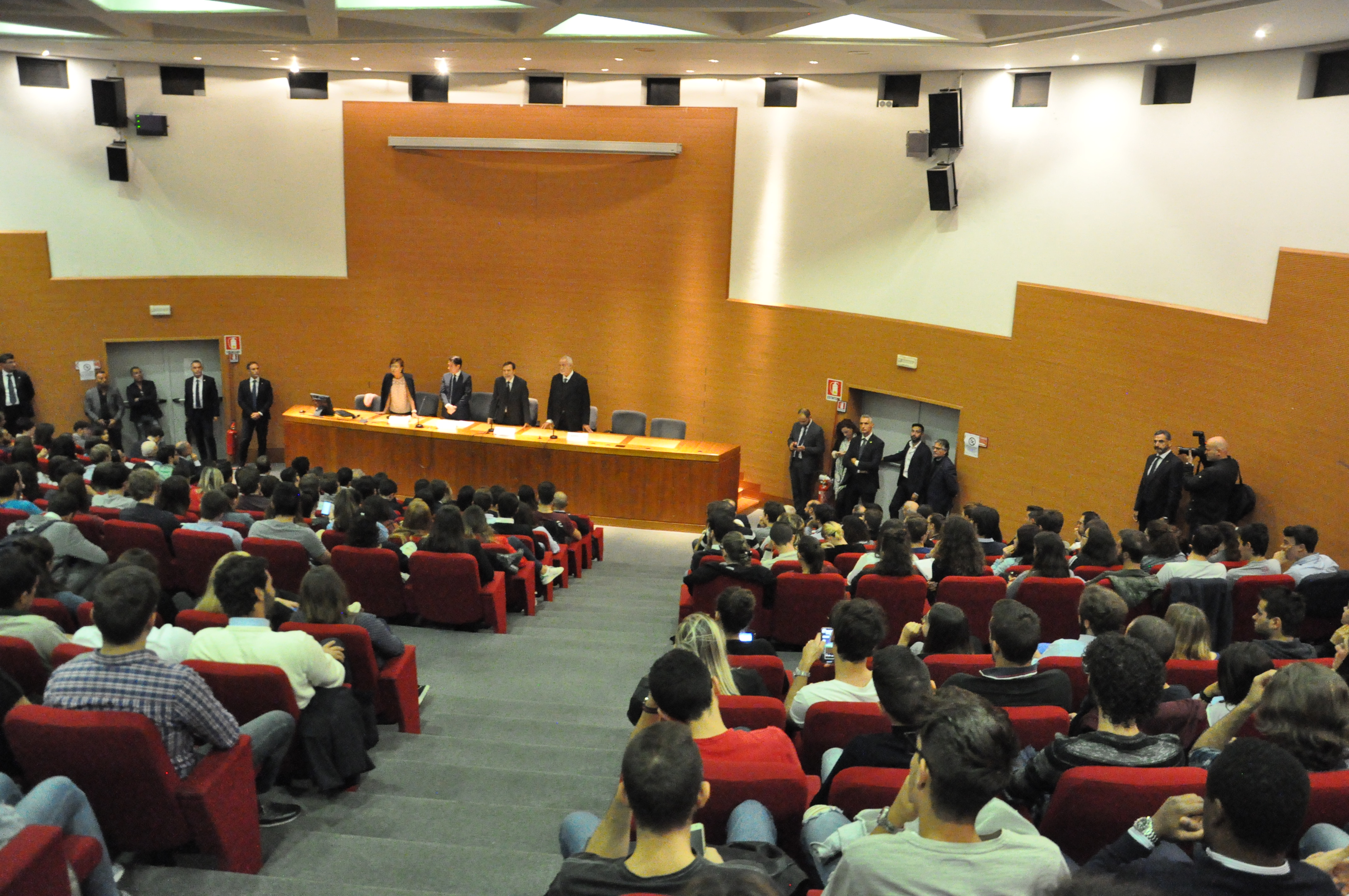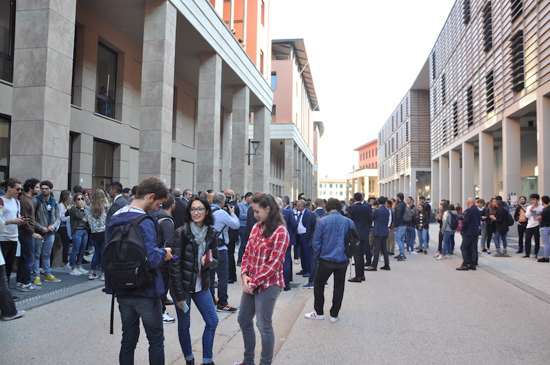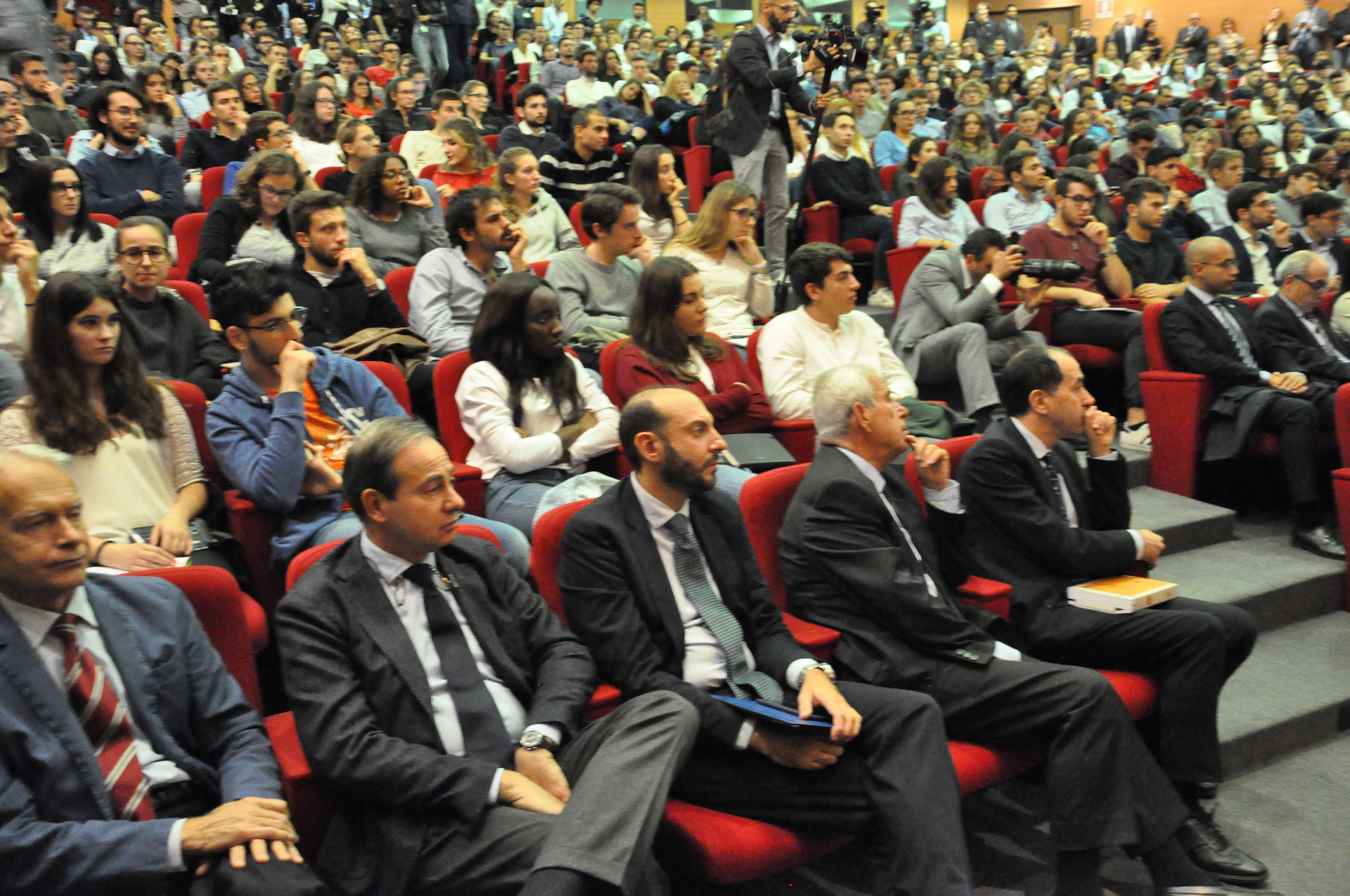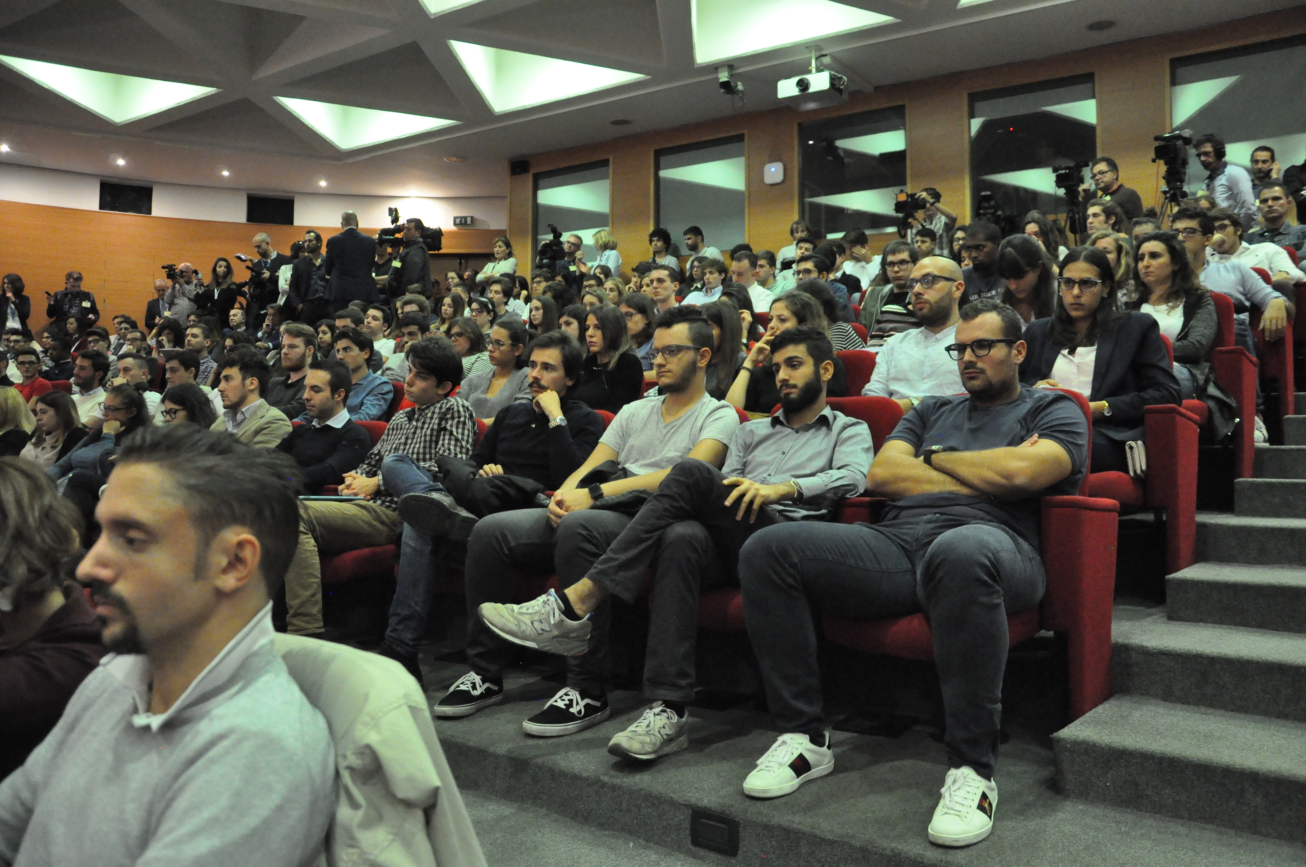 Dopo aver superato l’assedio di giornalisti e operatori radiotv, nonché quello di studenti a caccia di selfie, Conte si dirige nell’aula 18, dove lo aspettano poco più di 450 persone, la capienza massima. «Bentornato a casa» è la sintesi del saluto rivolto dal Rettore e dai colleghi, al quale Conte risponde con un sorriso quasi imbarazzato. «Non nego che sento nostalgia di queste aule» dice, ma subito si riprende «con questo non voglio dire che spero di tornarci presto. L’impegno istituzionale che ho preso durerà».