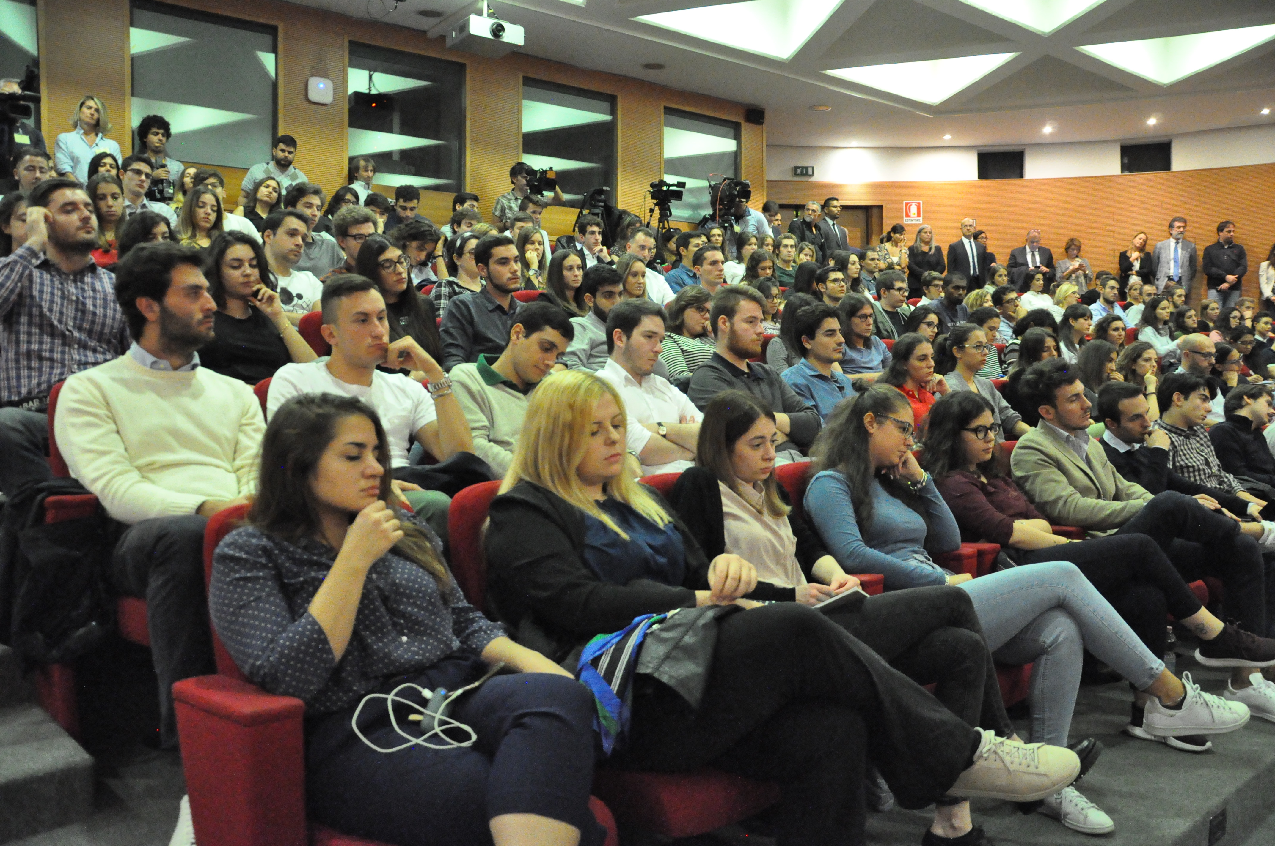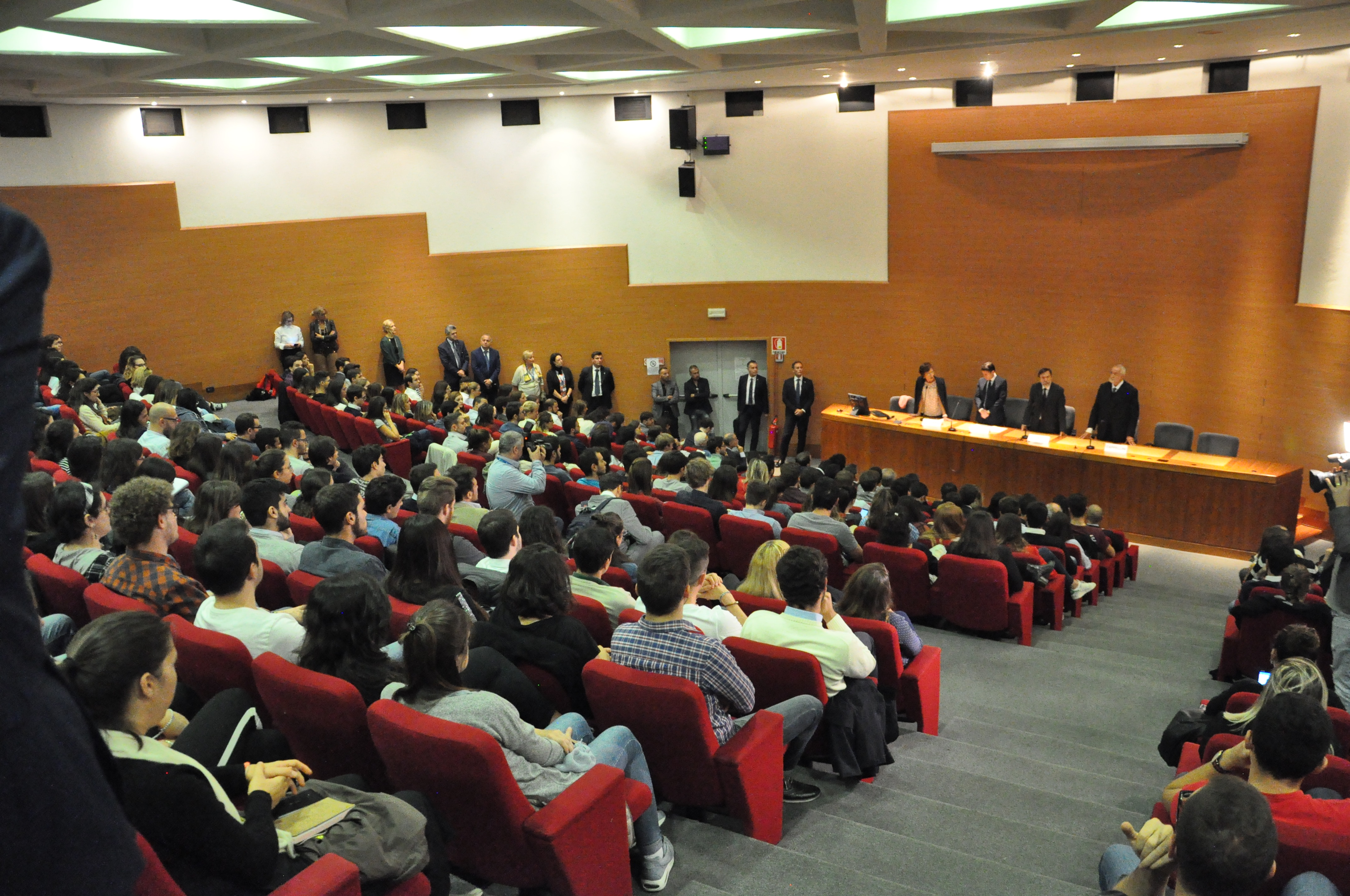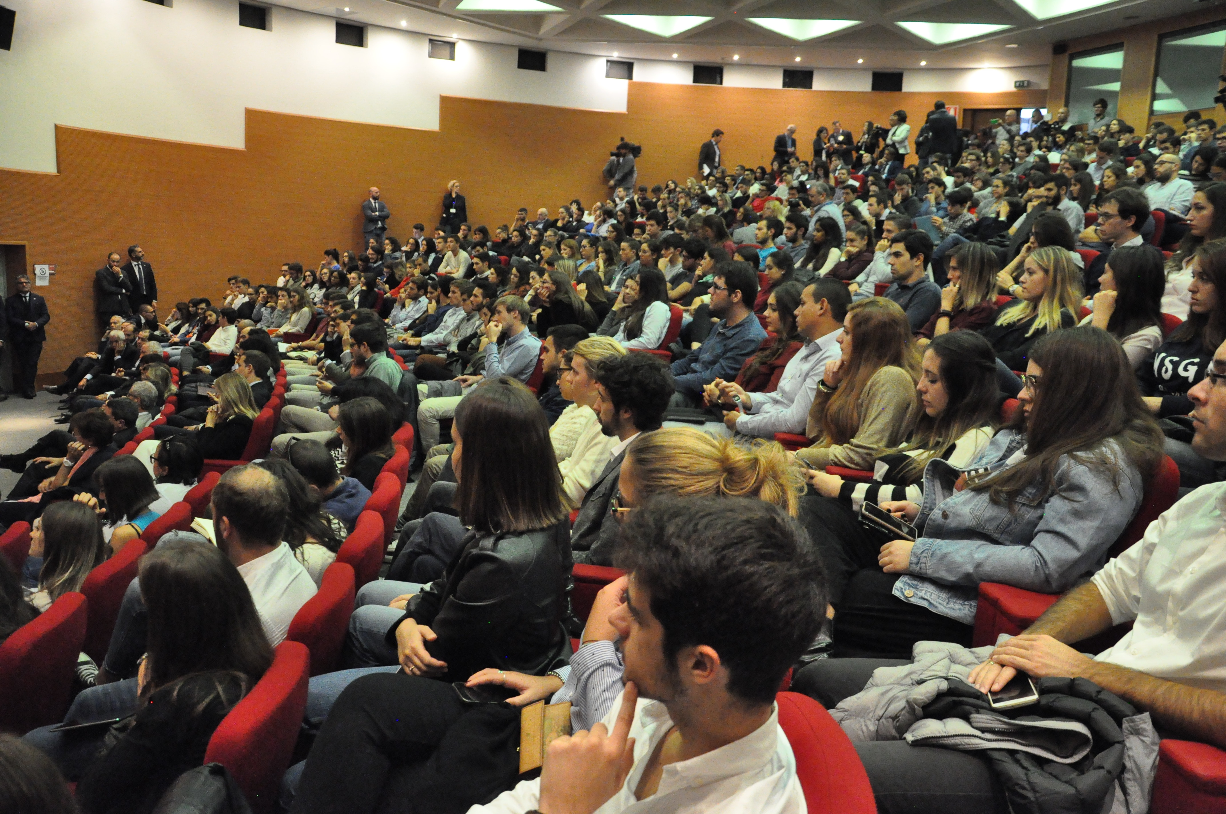 Dopo aver superato l’assedio di giornalisti e operatori radiotv, nonché quello di studenti a caccia di selfie, Conte si dirige nell’aula 18, dove lo aspettano poco più di 450 persone, la capienza massima. «Bentornato a casa» è la sintesi del saluto rivolto dal Rettore e dai colleghi, al quale Conte risponde con un sorriso quasi imbarazzato. «Non nego che sento nostalgia di queste aule» dice, ma subito si riprende «con questo non voglio dire che spero di tornarci presto. L’impegno istituzionale che ho preso durerà».