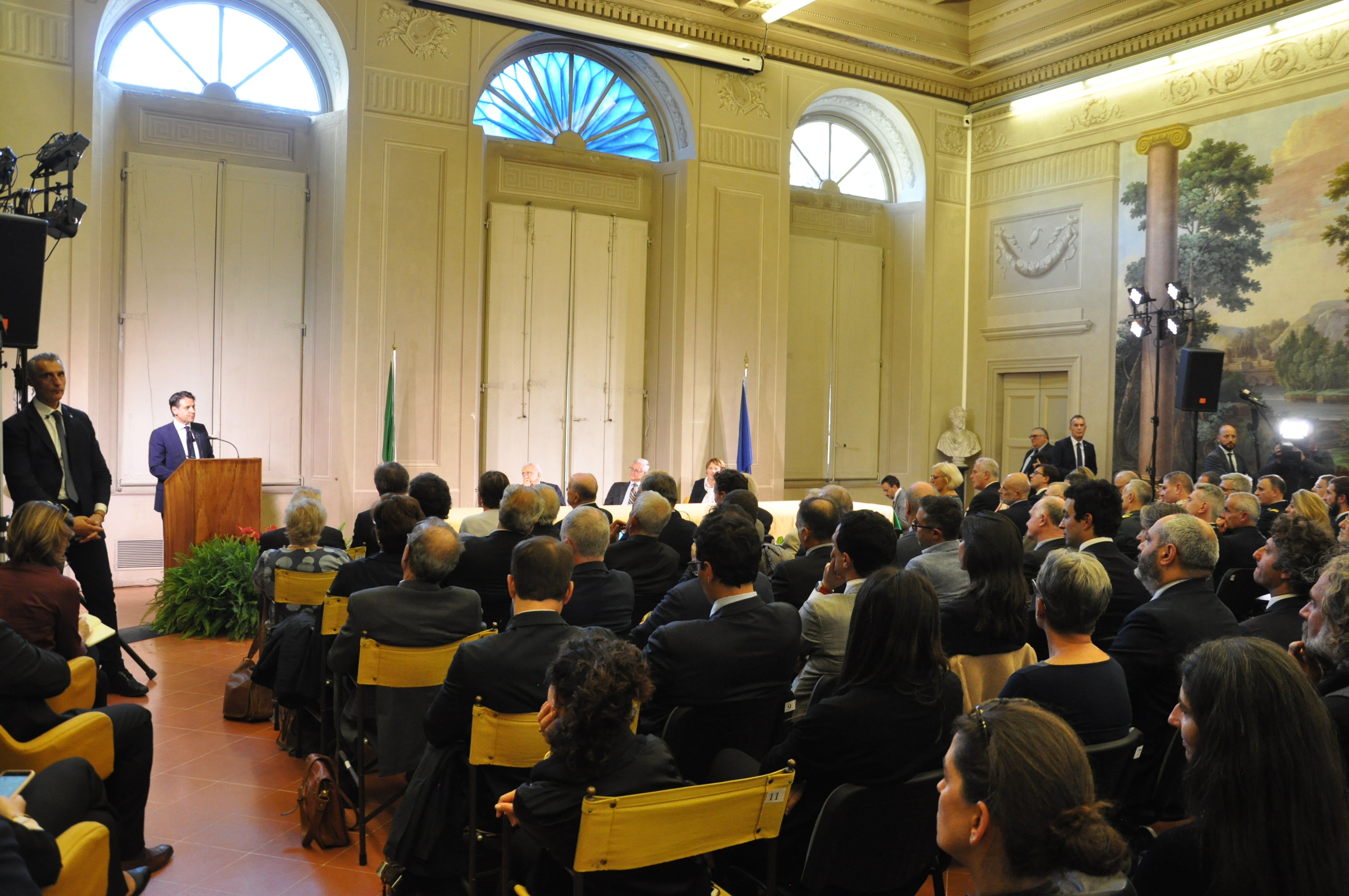 Alle 14,30 l’atteso intervento di Conte nella sala delle cerimonie. In prima fila, tra gli altri il fiorentino ex Presidente della Corte Costituzionale Paolo Grossi, il procuratore generale Marcello Viola, magistrati, accademici, autorità militari. Nel suo saluto, il presidente Marazzini sottolinea con soddisfazione, tra l’altro, come la visita di Conte sia la prima di un presidente del Consiglio all’Accademia della Crusca. Un’istituzione – ricorda – da oltre cinque secoli al servizio della cultura e che oggi viaggia con successo anche sui Social Network. Quindi la relazione del premier Conte, la seconda della giornata, sul sempre scottante (ma altrettanto irrisolto) tema «Lingua e diritto». Ovvero l’eccessiva complessità del linguaggio giuridico.