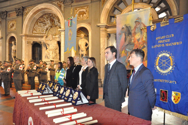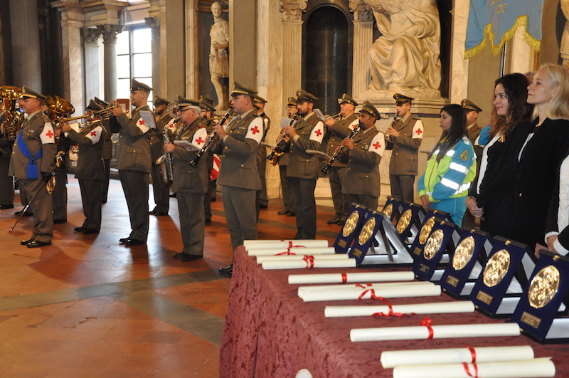 FIRENZE – Assegnati a Firenze 17 riconoscimenti per atti spontanei di solidarietà umana. Li ha conferiti l’Istituto degli Scudi di San Martino, l’associazione fiorentina che compie 35 anni di attenzione verso chi è pronto a sacrificarsi per aiutare gli altri. Una cerimonia solenne, come da tradizione, quella che si è svolta sabato 10 novembre nel Salone dei Cinquecento a Palazzo Vecchio, presenti il Gonfalone della città e la Banda del Corpo Militare della Croce Rossa Italiana di Firenze.