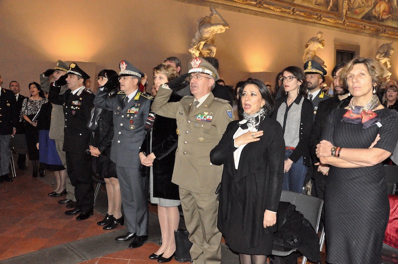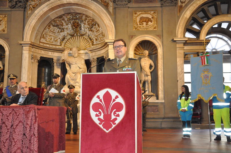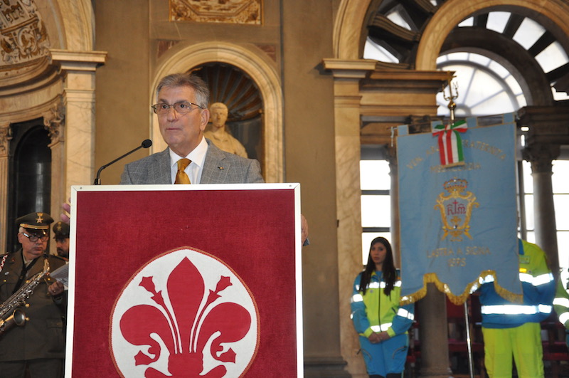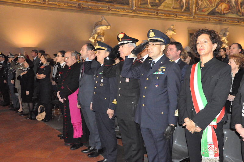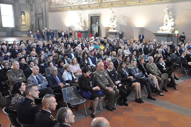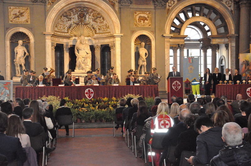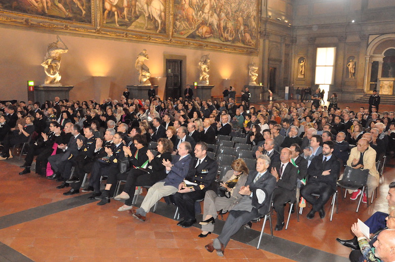 Nel suo saluto il presidente dell’Istituto, Roberto Lupi, ha ripercorso le tappe dei 35 anni di vita degli Scudi di San Martino, che ogni anno premia associazioni di volontariato, enti civili, militari e religiosi e singoli cittadini che si sono distinti per atti di solidarietà umana. Indirizzi di saluto e di apprezzamento sia verso i premiati che verso i promotori dell’iniziativa sono stati portati dal Presidente del Consiglio Comunale Andrea Ceccarelli, dal generale dell’Esercito Pietro Tornabene comandante del Presidio Militare e dal questore Alberto Intini, che rappresentavano rispettivamente il Capo di Stato Maggiore dell’Esercito e il Capo della Polizia. Il salone dei Cinquecento era gremito di autorità civili, militari e religiose con tanti ospiti e i familiari dei premiati arrivati da diverse parti d’Italia.