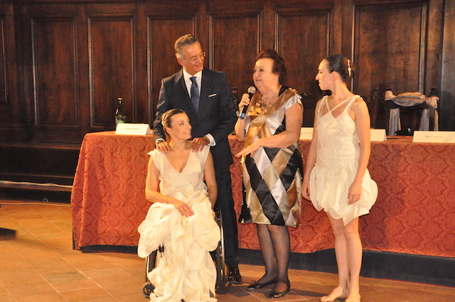 Nel corso della manifestazione, efficacemente condotta dal presentatore Stefano Baragli, un momento particolarmente suggestivo e applauditissimo è stata l’esibizione coreografica di Nicoletta Tinti e Silvia Bertoluzza. La prima è un ex atleta di ginnastica ritmica costretta su una sedia a rotelle da un’improvvisa fuoriuscita di un’ernia discale. Ma Nicoletta non si è data per vinta. Ha fondato insieme all’amica Silvia Bertoluzza una compagnia di danza, nella quale si esibisce coreograficamente con la parte superiore del suo corpo. Recente un’esibizione di Nicoletta e Silvia davanti a Papa Francesco al Circo Massimo a Roma nell’agosto 2018 durante un incontro con i giovani. Vedi il video qui sotto.