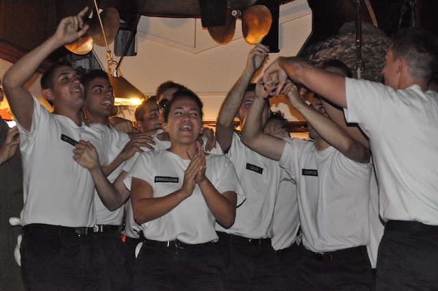 Giudichi lei. Gli allievi vivono insieme giorno e notte. Dalle aule, alla mensa, alle attività sportive al dormitorio (maschile e femminile) dove c’è posto per una quarantina di ragazzi. È impossibile non fare squadra. Così nasce lo spirito di gruppo indispensabile presupposto a far parte dell’equipaggio di un’unità. In Marina, dall’Accademia ad un equipaggio in operazioni, non c’è posto per un solista.