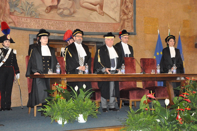 La cerimonia, per il terzo anno consecutivo, si è svolta nella suggestiva aula magna dell’Istituto di Scienze Militari Aeronautiche (Isma) delle Cascine, ben più ampia dell’aula delle udienze della sede regionale della Corte dei Conti in viale Mazzini. Per la prima volta, evento significativo per la Toscana, ha partecipato il presidente della Corte dei Conti Angelo Buscema, che nel suo saluto ha sottolineato la costante e silenziosa azione di controllo sulla gestione del denaro pubblico da parte della magistratura contabile. Al centro come in periferia «noi ci siamo» ha precisato. Al suo arrivo da Roma, prima della cerimonia all’Isma, Buscema è andato a visitare la Sezione Controllo Regionale in via dei Servi incontrandosi con il personale di quegli uffici. Successivamente il presidente ha raggiunto, a fine mattinata, la sede della Corte dei Conti in viale Mazzini, per un contatto diretto con gli addetti alla Sezione Giurisdizionale e della Procura regionale.