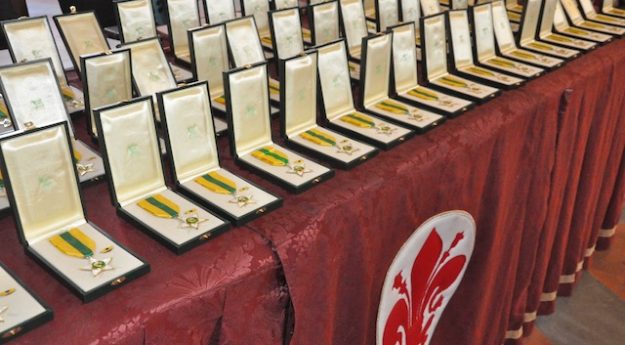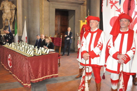 FIRENZE – Stelle al merito del lavoro a 84 cittadini toscani che si sono distinti per qualità professionale, miglioramenti che hanno apportato all’attività quotidiana della propria azienda o per gli insegnamenti che hanno saputo trasmettere ai colleghi più giovani. Questa la motivazione con cui sono stati premiati, nella ricorrenza del 1° maggio, i neo Maestri del Lavoro nel corso di una solenne cerimonia in un gremitissimo Salone de’ Cinquecento a Palazzo Vecchio a Firenze.