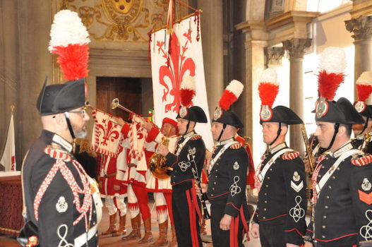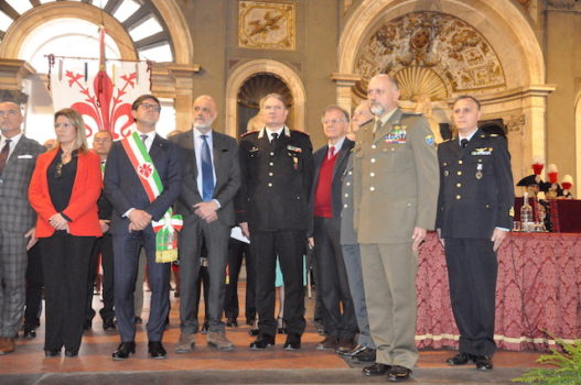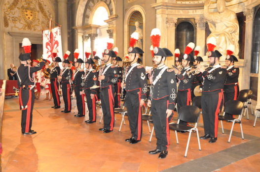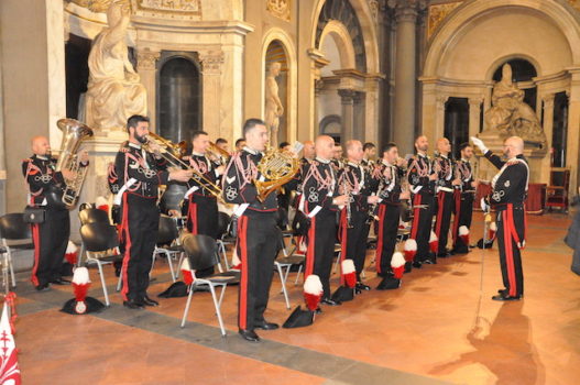 La Fanfara della Scuola Marescialli e Brigadieri dei Carabinieri, diretta dal luogotenente maestro Ennio Robbio, ha accompagnato la cerimonia suonando, oltre l’Inno di Mameli e l’Inno d’Europa, una marcia tratta da «Ernani» di Giuseppe Verdi.