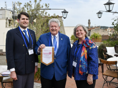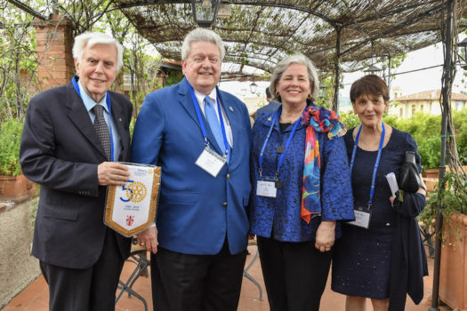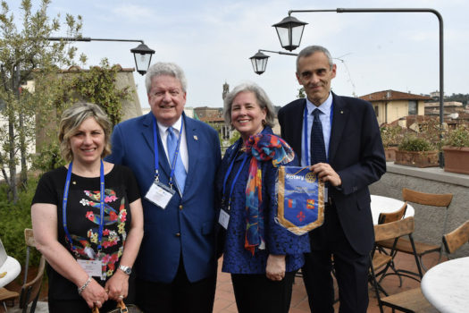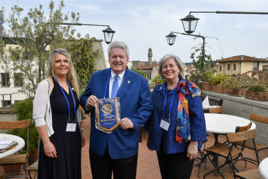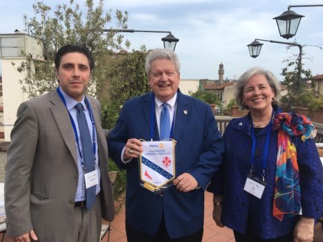 A Firenze Maloney, accompagnato dalla moglie Gay anch’essa avvocato e rotariana, ha voluto dapprima incontrare i prossimi presidenti dei Rotary fiorentini che guideranno i rispettivi club dal 1° luglio al 30 giugno 2020. Con loro numerosi rappresentanti dei club giovanili Rotaract, che fanno parte della grande famiglia rotariana. All’incontro conviviale in un noto hotel fiorentino, c’erano tra gli altri Francesco Arezzo, Board Director del Rotary International, Massimo Nannipieri prossimo governatore del 2071° Distretto che comprende i 66 Rotary Club della Toscana, Letizia Cardinale che assumerà lo stesso incarico nella successiva annata rotariana 2020-2021.