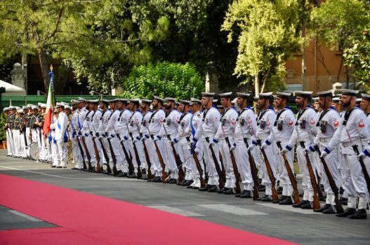 Siamo a Palazzo Marina a Roma in un torrido venerdì 21 giugno. L’ammiraglio Valter Girardelli, capo di stato maggiore uscente, gli ha appena consegnato solennemente la Bandiera della Marina militare e delle Forze Navali. È la bandiera della Forza armata, che per tradizione viene custodita presso il Comando in capo della Squadra navale.