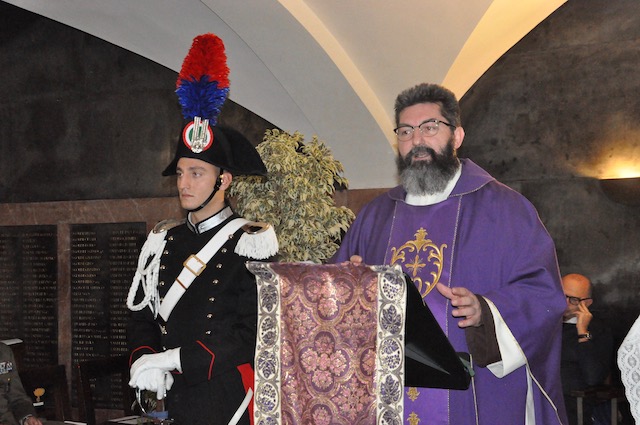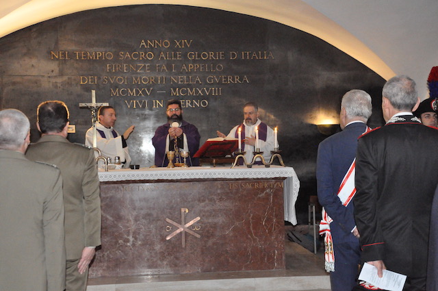 La messa è stata celebrata dal decano dei cappellani militari toscani, fra’ Cesare Bedogné della Scuola Maresciualli e Brigadieri Carabinieri, insieme al guardiano di Santa Croce padre Paolo Bocci e a don Francesco Bregoli, neo cappellano dell’Esercito a Firenze.