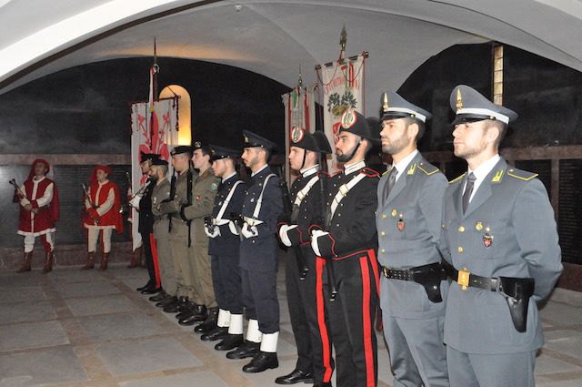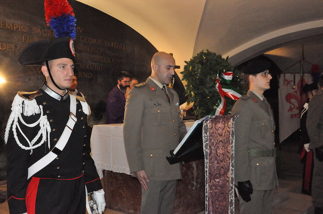 Cerimonia militare religiosa al Famedio di Santa Croce a Firenze, nella giornata dedicata ai Defunti, per ricordare i soldati fiorentini caduti in guerra, dal primo conflitto mondiale in avanti. Alla cerimonia di sabato 2 novembre sono intervenute le massime autorità cittadine guidate dal prefetto Laura Lega, con il presidente del Consiglio Regionale Eugenio Giani e il generale Pietro Tornabene, comandante del Presidio militare. Con loro l’assessore Alessia Bettini in rappresentanza del comune, il presidente del Consiglio comunale Luca Milani, il procuratore generale Marcello Viola, il questore Armando Nanei, i vertici delle Firenze Armate e della Guardia di Finanza, il comandante dei Vigili del Fuoco Maurizio Lucia.