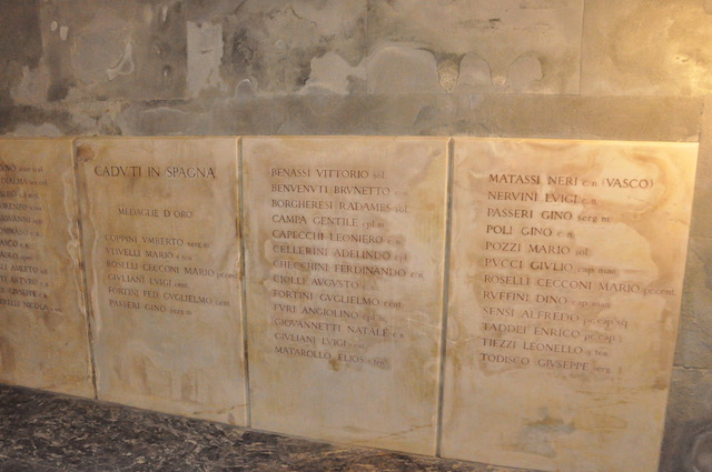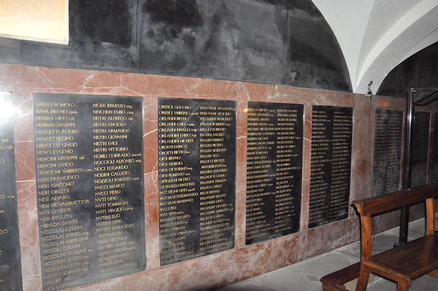A Firenze si comincia sabato 2 novembre, quando in occasione della giornata dedicata ai Defunti si svolge una santa Messa presso il Famedio di Santa Croce (ingresso da Largo Bargellini alle 10.30). È il «sacrario» dei soldati fiorentini caduti dalla prima guerra mondiale, ospitato nella cripta della Basilica. Nei riquadri sono incisi i nomi di oltre 3500 soldati disposti in ordine alfabetico e con l’indicazione del grado. Un luogo suggestivo e di raccoglimento dove le autorità militari fiorentine deporranno un cuscino di fiori.