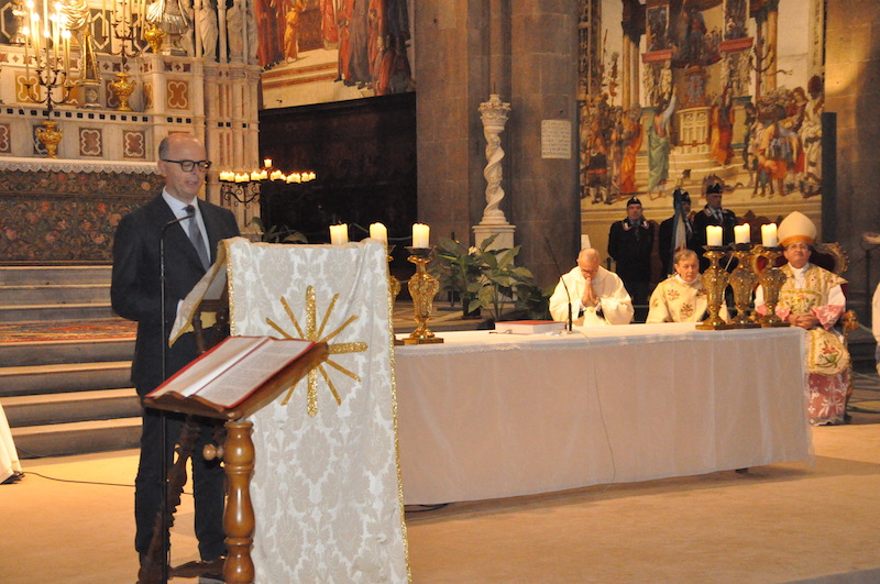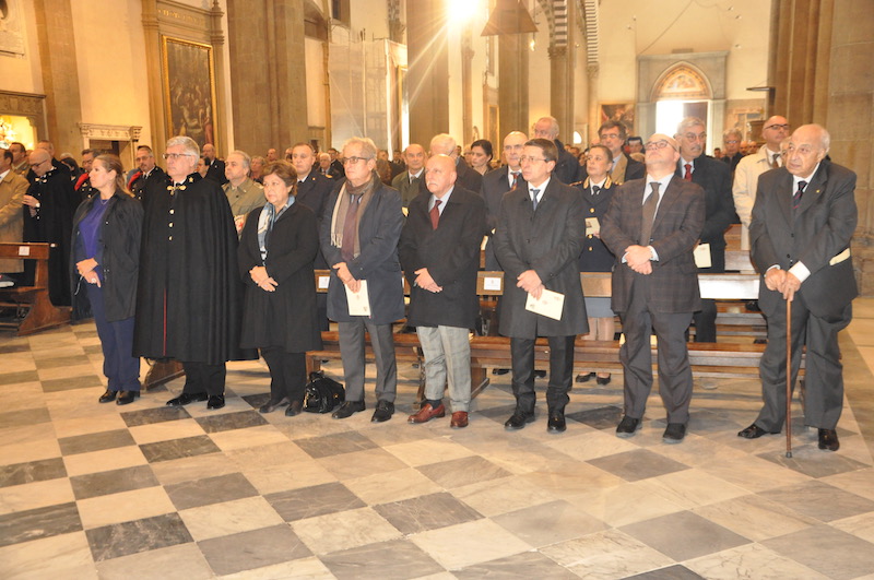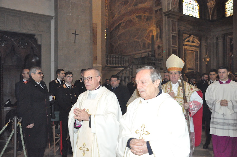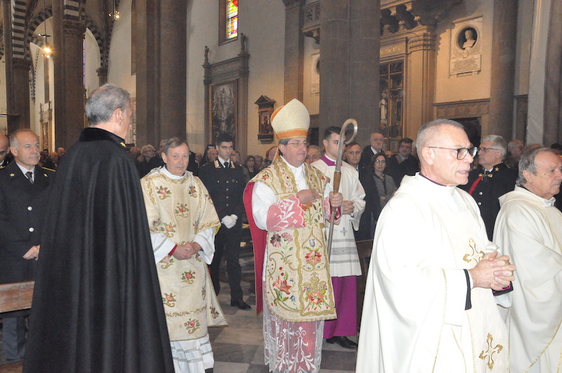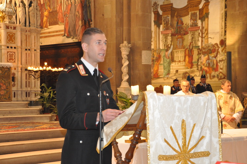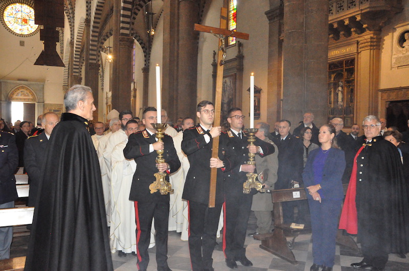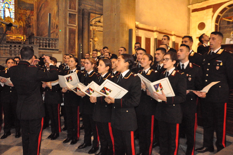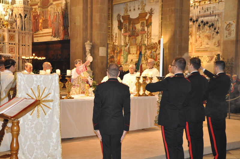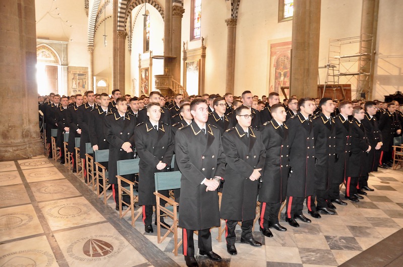 Suggestiva e molto sentita, durante la funzione religiosa, l’esecuzione di brani da parte della Fanfara e del Coro della Scuola Marescialli e Brigadieri, le cui note hanno reso ancora più partecipata tutta la celebrazione. Non solo da parte dei fedeli presenti nella Basilica di Santa Maria Novella ma anche tra gli stessi componenti della fanfara e del coro, dove insieme alla professionalità l’emozione non è certo mancata. Come pure qualche nodo alla gola, respinto anche se a fatica.