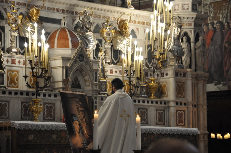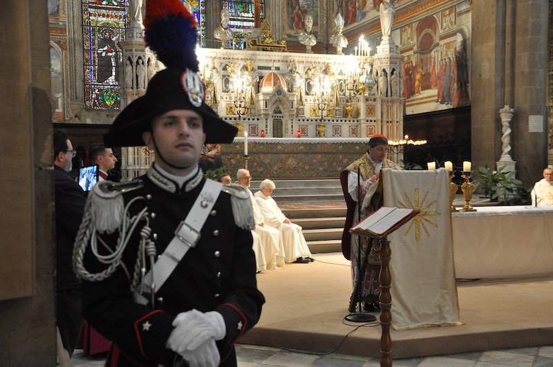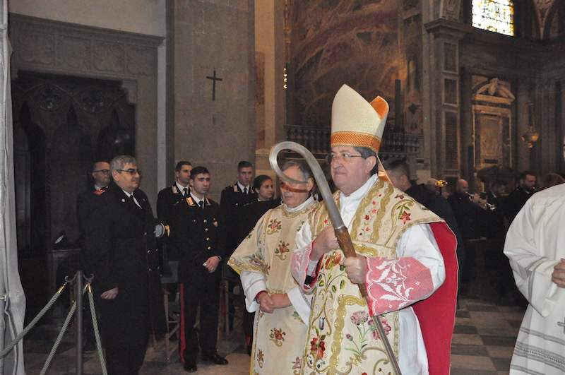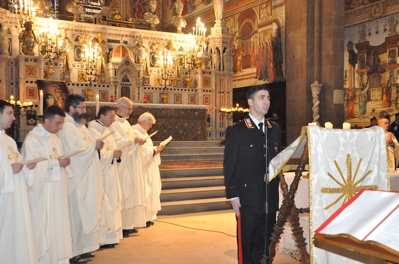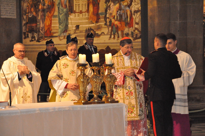 Ed è proprio sul concetto di fedeltà si è soffermato tra l’altro, nella sua omelia, il cardinale arcivescovo di Firenze Giuseppe Betori che ha celebrato la funzione religiosa insieme a numerosi sacerdoti, tra cui i cappellani militari dei Carabinieri (monsignor Mauro Tramontano e fra’ Cesare Bedogné), delle altre Forze Armate e della Polizia di Stato. «La fedeltà come ci dice il Vangelo – ricorda Betori – percorre tutta la vita di Maria». «E voi Carabinieri – aggiunge il cardinale – a chi dovete essere fedeli? Certamente alle leggi, anche se serve sempre un orientamento che illumini la stessa applicazione delle leggi. La fede cristiana ci dice che scegliendo la fedeltà alla volontà di Dio noi percorriamo una strada sicura».