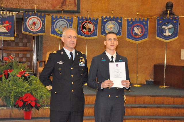 Una cerimonia emozionante che si è svolta nell’aula magna dell’Istituto di Scienze Militari Aeronautiche (Isma) alle Cascine di Firenze, davanti ai comandanti dell’Isma generale Vincenzo Nuzzo e della Douhet colonnello Davide Rosellini. Tra gli ospiti anche i comandanti delle altre tre Scuole militari italiane: colonnello Amedeo Cristofaro («Nunziatella» Napoli), capitano di vascello Maurizio Ortiz Neri («Morosini» Venezia) colonnello Daniele Pepe («Teulié» Milano).