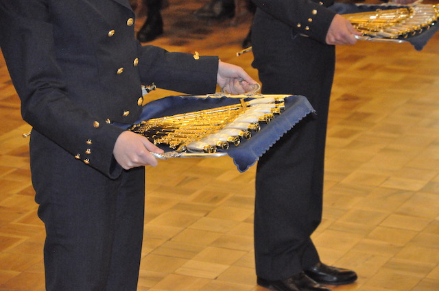 Lo spadino viene idealmente passato ai neo «cadetti» dai colleghi anziani del 2° anno, in questo caso il corso Perseo, che hanno consegnato loro anche il «librone» che raccoglie le tradizioni della scuola, insieme alla penna d’oca e al compasso simboli rispettivamente del liceo classico e scientifico.