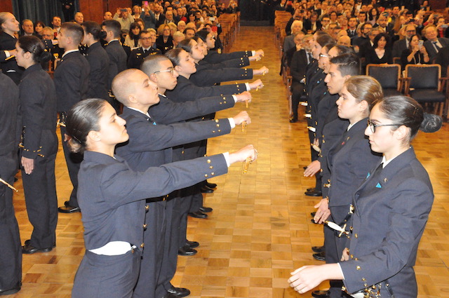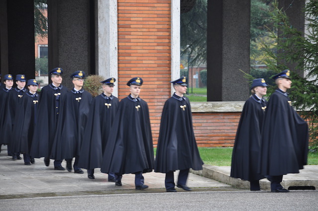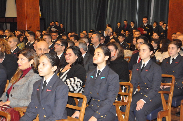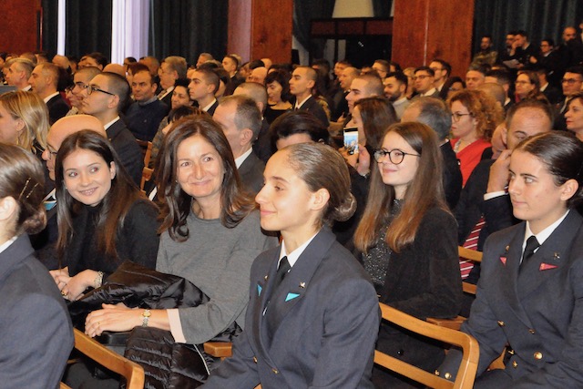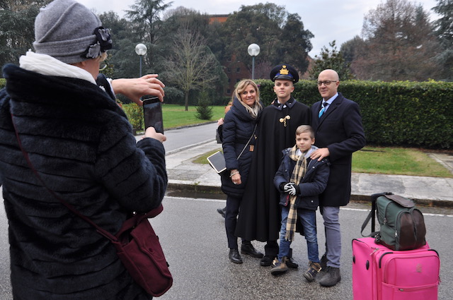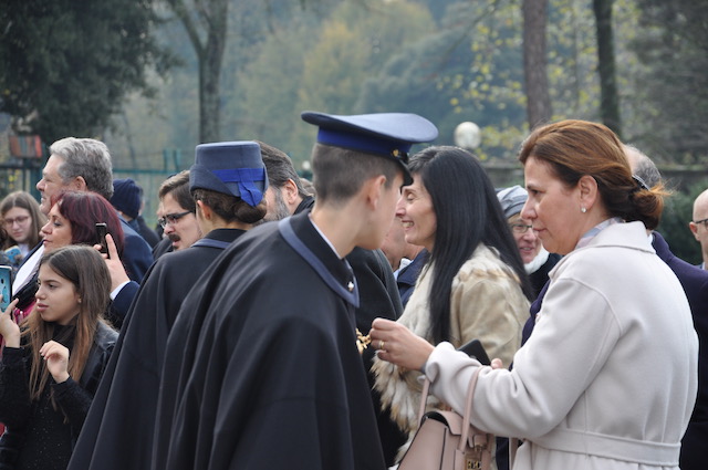 Presenti i familiari degli allievi del 1° anno arrivati da ogni parte d’Italia per assistere con orgoglio a questo importante momento della loro vita scolastica e militare. Ma anche … per riportarseli a casa per la prima sospirata licenza (il ponte dell’Immacolata) da quando in settembre li hanno salutati al loro ingresso alla Douhet.