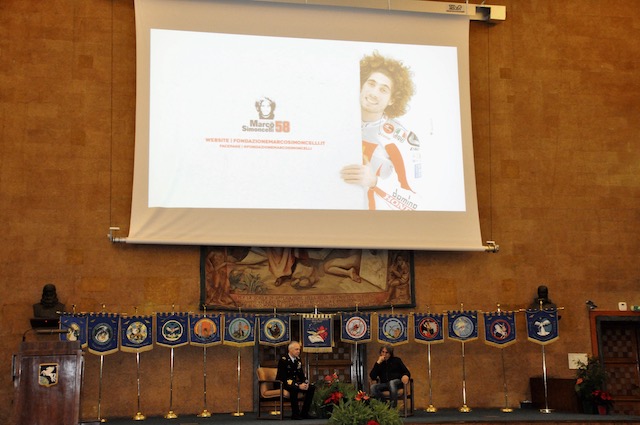 Ospite d’onore della giornata è stato Paolo Simoncelli, fondatore e team manager della SIC 58 Squadra Corse e promotore della Marco Simoncelli Fondazione Onlus. «Intervistato» dal colonnello Rosellini, l’ospite ha spiegato quanto sta portando avanti insieme alla moglie, nel nome del compianto figlio Marco, noto campione di motociclismo tragicamente scomparso il 23 ottobre del 2011 durante una gara di MotoGP in Malesia.