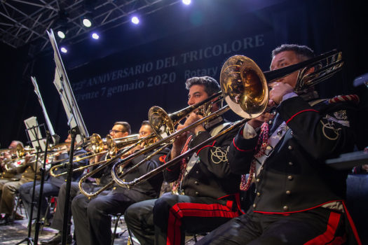 Una serata non stop, durata oltre tre ore tra brani musicali e testimonianze storiche e umane legate alla bandiera, condotta dall’applauditissima Lucia Petraroli, nota e apprezzata giornalista televisiva. Da brani e inni dell’Italia preunitaria a motivi celebri del Risorgimento e del periodo a cavallo tra i due secoli, come il brano «Echi di trincea» in ricordo dei soldati della Grande Guerra. Ma non sono mancati, da ultimo, anche testimonianze musicali più recenti come l’inossidabile «Moment for Morricone».