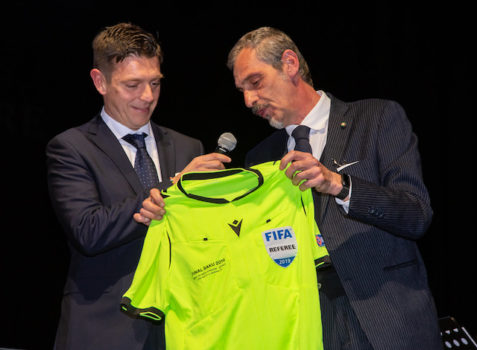 Tra gli ospiti chiamati da Lucia Petraroli sul palcoscenico, dopo il presidente viola Commisso, è stato il turno dell’arbitro internazionale fiorentinissimo Gianluca Rocchi (video) presentato da Maurizio Francini, responsabile del Centro Tecnico di Coverciano. Il luogo dove si allenano non solo le Nazionali di calcio, ma anche arbitri come lo stesso Rocchi. Sempre da Coverciano – e martedì 7 gennaio anche … al concerto del Tricolore – sono passati sportivi come i bravissimi giocatori della Nazionale Trapiantati, (video) neo campioni d’Europa e ora in attesa di affrontare un nuova sfida a livello mondiale.