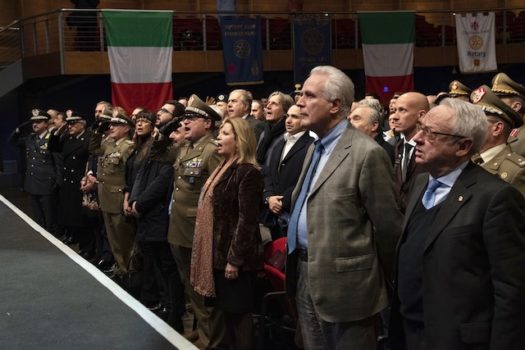 Chiusura della serata con un bis che ha subito coinvolto il pubblico («O’ surdato innamorato»). Poi tutti in piedi per cantare l’Inno nazionale «Fratelli d’Italia». Tutti a piena voce, quasi nessuno escluso. Non bisbigliato sommessamente, come succede in non poche occasioni. Serate rotariane comprese.