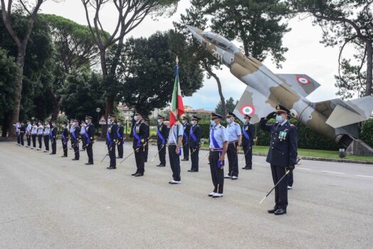 Sul piazzale Bandiera dell’Isma (già Scuola di Guerra Aerea delle Cascine) era schierata una rappresentanza del personale militare e civile dell’Istituto nonché della Scuola Militare Aeronautica Giulio Douhet, il «college militare» dell’Aeronautica frequentato da allievi delle ultime tre classi di liceo classico e scientifico.