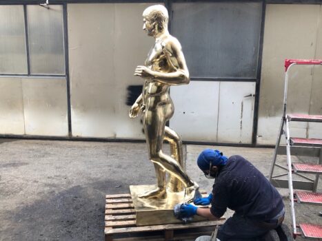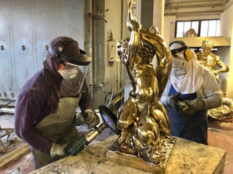 I primi contatti con i vietnamiti risalgono agli inizi del 2019. Ci vuole qualche mese prima di firmare il contratto di fornitura, ma alla fine il gusto e l’esperienza dei maestri artigiani fiorentini convincono gli acquirenti. Alla Galleria Frilli e alla Fonderia Ciglia e Carrai si mettono subito all’opera. Per realizzare la «replica» di una statua in bronzo, dal calco sul modello originale allo stampo, dalla fusione a cera persa alla cesellatura a mano, ci vogliono circa tre mesi. Il tempo stringe. Il lockdown della primavera del 2020 ci mette del suo. Ma alla fine di ottobre tutto è pronto per la partenza.