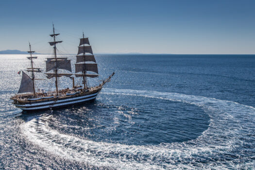 Con i suoi 101 metri di lunghezza da poppa a bompresso e le sue 23 vele armate per una superficie complessiva di oltre 2600 mq, Nave Vespucci è il vascello simbolo dell’Italia nei mari di tutto il mondo. Compito primario è l’addestramento dei futuri equipaggi della Marina. Dagli allievi ufficiali dell’Accademia Navale di Livorno ai volontari in ferma prefissata per arrivare anche ai giovanissimi allievi della Scuola Navale Morosini di Venezia. Nel futuro della maggior parte di loro c’è una moderna e tecnologica «nave grigia» ad attenderli, ma l’addestramento marinaresco e soprattutto lo spirito di squadra che si respira sui ponti e tra le vele del Vespucci sono basi fondamentali della loro crescita professionale e umana.