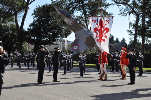 Davanti a loro il comandante delle Scuole dell’Aeronautica generale Aurelio Colagrande e il comandante dell’Isma, generale Urbano Floreani. Tra le autorità presenti il Governatore della Toscana Eugenio Giani, il prefetto vicario Paola Berardino, l’assessore comunale Alessandro Martini, il comandante interregionale della Finanza generale Sebastiano Galdino con i vertici delle forze armate presenti a Firenze. La città era rappresentata dal Gonfalone, decorato della medaglia d’oro al valor militare.