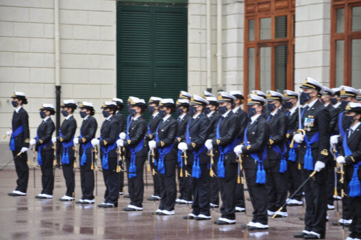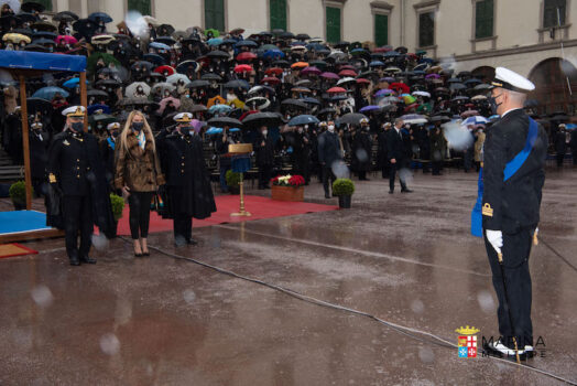 La parte ufficiale della grande giornata degli allievi ha visto la presenza del sottosegretario alla Difesa, senatrice Stefania Pucciarelli, accompagnata dal capo di Stato Maggiore della Difesa ammiraglio Giuseppe Cavo Dragone (già Comandante dell’Accademia Navale nel periodo 2011-2014) e dall’ammiraglio di squadra Enrico Credendino, a un mese esatto (4 novembre 2021) dal suo insediamento nel ruolo di Capo di Stato Maggiore della Marina.