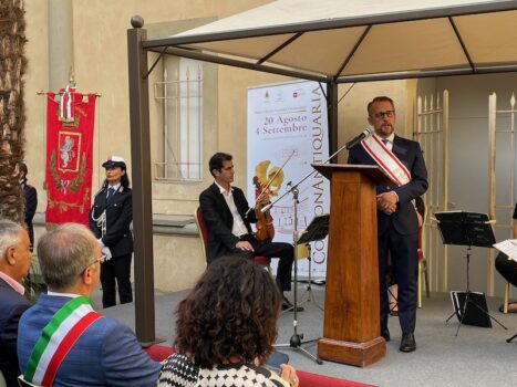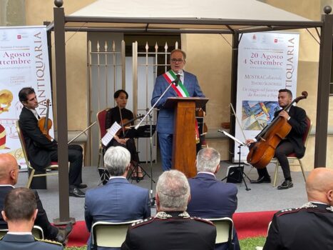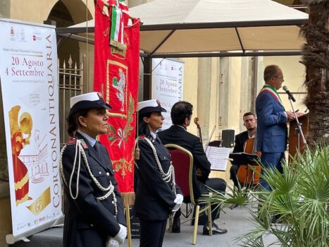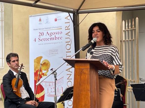 Al taglio del nastro di Cortonantiquaria 2022 è intervenuta, per il Governo, il sottosegretario al Lavoro e Politiche sociali Tiziana Nisini accolta dal sindaco di Cortona Luciano Meoni e dal vice sindaco e assessore alla Cultura e Turismo Francesco Attesti. Il saluto della Regione Toscana è stato portato dal vice presidente del Consiglio Regionale Marco Casucci, quello della Provincia di Arezzo dal vice presidente Nicola Carini, che è anche presidente del Consiglio comunale di Cortona. Tra i presenti il presidente della Camera di Commercio di Arezzo e Siena Massimo Guasconi, il presidente della Banca Popolare di Cortona Giulio Burbi e per Iureconsulti l’avvocato Emanuele Spina. Molto applaudita l’esibizione musicale della Cor Orchestra.