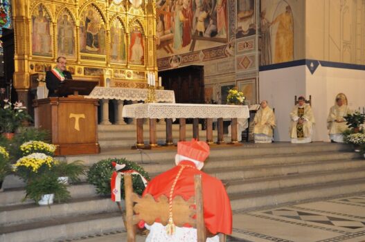 Solenne cerimonia nella Basilica di Santa Croce, dove il cardinale arcivescovo Giuseppe Betori ha presieduto una messa in ricordo delle vittime dell’alluvione del 1966. Presente anche il cardinale Ernst Simoni canonico onorario del capitolo della cattedrale di Santa Maria del Fiore. Con lui le massime autorità fiorentine, guidate dal prefetto Valenti con il presidente del consiglio comunale Luca Milani, promotore della commemorazione insieme all’Associazione Firenze Promuove.