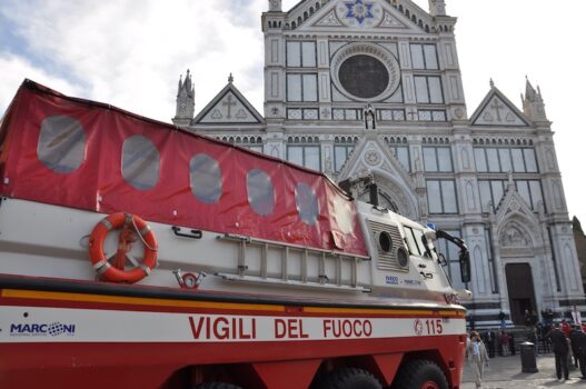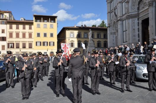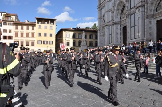 Cornice particolare all’evento è stata la partecipazione della Banda del Corpo Nazionale dei Vigili del Fuoco, diretta dal Maestro Donato Di Martile composta da oltre 40 musicisti che hanno accompagnato il rito religioso. In piazza Santa Croce, per la curiosità di tanti cittadini e turisti, sono rimasti esposti automezzi e attrezzature dei Vigili del Fuoco di Firenze e della Protezione civile. I Vigili del Fuoco erano rappresentati dal Direttore Regionale Silvano Barberi e dal Comandante provinciale di Firenze Gennaro Tornatore, al quale in tarda serata è poi arrivata la buona notizia che il Cosniglio dei Ministri lo ha promosso Dirigente Generale.