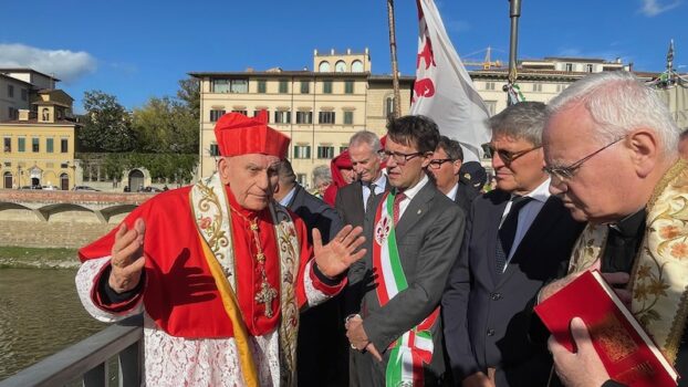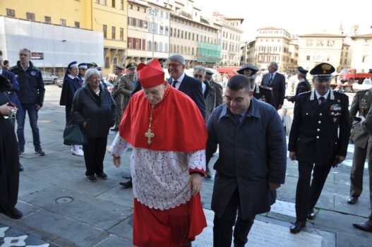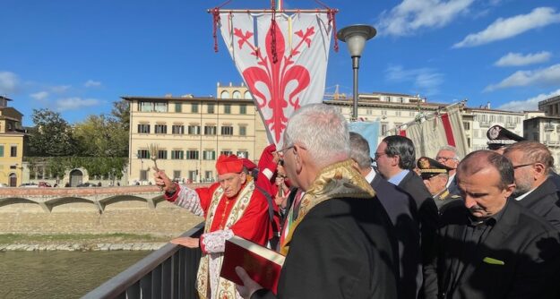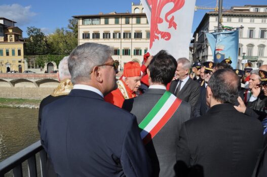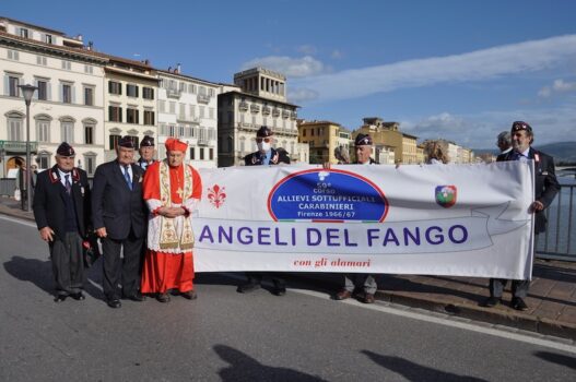 Al termine della cerimonia, un corteo aperto dalla Banda dei Vigili del Fuoco si è mosso dalla Basilica di Santa Croce per raggiungere il ponte alle Grazie, da dove come tradizione è stata lanciata in Arno dal sindaco Dario Nardella una corona d’alloro in ricordo delle vittime dell’alluvione. La cerimonia è stata benedetta dall’attivissimo cardinale Simoni (classe 1928) che poco dopo ha lasciato Firenze per presenziare ad un altro evento a Salerno, la cui diocesi è guidata dall’arcivescovo fiorentino monsignor Andrea Bellandi.