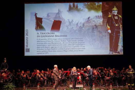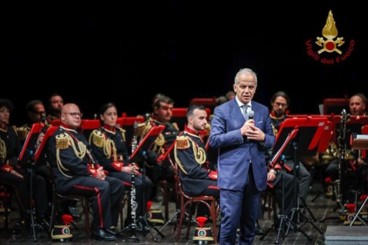 La serata al Teatro Argentina, presentata da Pino Insegno, ha visto l’applauditissima esibizione della Banda del Corpo Nazionale dei Vigili del Fuoco diretta dal Maestro Donato Di Martile con la partecipazione del tenore maestro Francesco Grollo.