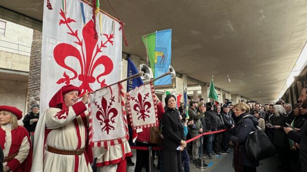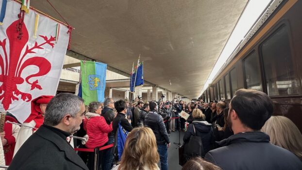 Alla sosta fiorentina del Treno del Ricordo era presente per il governo Eugenia Maria Roccella, ministro per la famiglia, la natalità e le pari opportunità. In rappresentanza della Regione Toscana c’era l’assessore alle infrastrutture digitali Stefano Ciuoffo, e per il Comune l’assessore Maria Federica Giuliani, che ha la delega per la cultura della memoria. Presenti il Gonfalone della città di Firenze decorato di medaglia d’oro al valor militare, la Fanfara della Scuola Marescialli e Brigadieri Carabinieri di Firenze, i labari delle sezioni di Firenze e Pisa dell’Associazione Nazionale Venezia Giulia e Dalmazia.