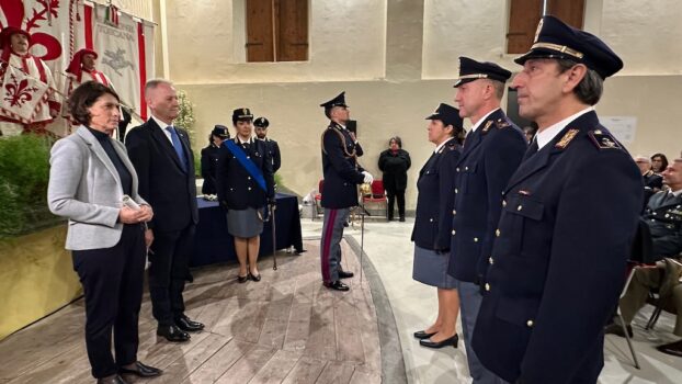Davanti alle massime autorità fiorentine, guidate dal cardinale arcivescovo Giuseppe Betori e dal Prefetto Francesca Ferrandino, il questore Maurizio Auriemma ha sintetizzato l’attività della Polizia di Stato a Firenze nel corso del 2023. Un plauso a tutti gli operatori (della Questura come delle varie specialità della P.S.) ma anche «un ringraziamento sentito, doveroso e affettuoso, pieno di riconoscenza e gratitudine va alle nostre famiglie. A loro – ha detto Auriemma che a fine anno lascerà il servizio attivo dopo 40 anni di carriera – va il mio grazie per aver sofferto in silenzio, con dignità le difficoltà, i dolori, gli abbandoni conseguenti all’esercizio di una professione e nell’adempimento di una missione piena di rischi e sacrifici».