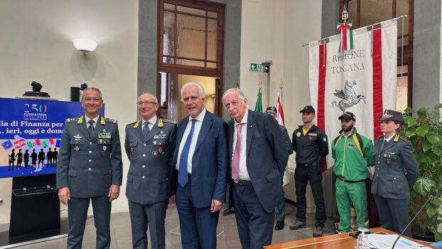 All’inaugurazione di questo evento, giovedì 23 maggio, ha partecipato il presidente della Regione Toscana Eugenio Giani e il generale di corpo d’armata Fabrizio Cuneo, comandante interregionale delle Fiamme Gialle per l’Italia Centro-Settentrionale. Il professor Cosimo Ceccuti, presidente della Fondazione Spadolini Nuova Antologia, ha presentato il volume «La Guardia di Finanza per la Toscana … ieri, oggi è domani» svolgendo una prolusione storica sul ruolo delle Fiamme Gialle non solo come come tutori della sicurezza economica ma anche come corpo militare (dal 1907 i Finanzieri portano le stellette) al pari delle altre forze armate. (Qui la prolusione completa di Cosimo Ceccuti).