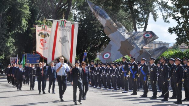 Nello stesso piazzale erano schierati gli allievi dei tre corsi liceali della Douhet: Vega (1° anno), Ursa (2° anno), Taurus (3° anno) quest’ultimo prossimi agli esami di maturità. Gli onori stati resi dalla Fanfara del Comando Scuole dell’Aeronautica/3ª Regione Aerea di Bari diretta dal 1° Luogotenente maestro Nicola Cotugno. Presenti anche i gonfaloni di Firenze, della Città Metropolitana e della Regione Toscana con i labari dell’Istituto Nazionale del Nastro Azzurro e delle Associazioni d’arma.
