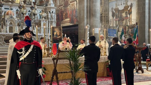 FIRENZE – «Parlare di fedeltà nel mondo di oggi a volte sembra difficile. La fedeltà è un atteggiamento non sempre molto apprezzato. Oggi si guarda alla persona fedele con sospetto, non come un esempio da imitare». Parole nel neo arcivescovo di Firenze Gherardo Gambelli pronunciate in occasione della ricorrenza della «Virgo Fidelis» patrona dell’Arma dei Carabinieri. «La fedeltà – ha aggiunto l’arcivescovo – è frutto dell’umiltà e della fiducia in Dio» e «per voi Carabinieri, al di là del ruolo che ricoprite, la Virgo Fidelis ricorda qual è la responsabilità che avete accettato indossando codesta divisa. L’essere fedeli fino alla fine». (Qui l’omelia completa di monsignor Gambelli).