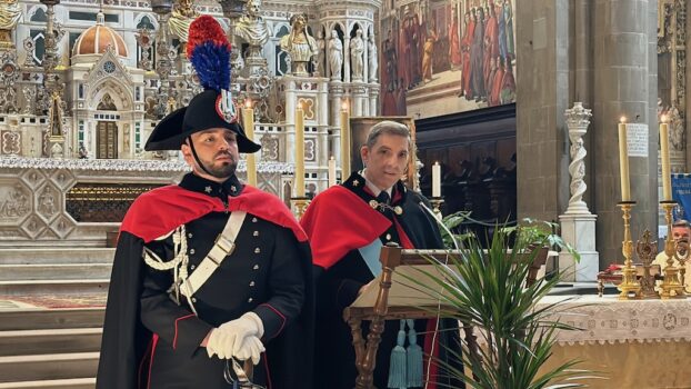 Nel suo saluto agli intervenuti (molti militari del comando provinciale di Firenze e della Scuola Marescialli e Brigadieri, nonché la rappresentanza dell’Istituto del Nastro Azzurro e dell’Associazione Nazionale Carabinieri) il generale Falferi ha sottolineato «oggi viene rinnovato l’impegno di essere servitori fedeli, dispensatori non di lusinghe, ma di impegni concreti, non di mere promesse, ma di progetti non di vacue ed estemporanee rassicurazioni, ma di reale protezione, non di timori, ma di certezze». Per i Carabinieri ha aggiunto il comandante della Legione Toscana «è un impegno nella quotidianità che è fatta di pericoli e di sfide, che non si possono affrontare e non possiamo affrontare senza fedeltà, senza rigore, senza umanità. Fedeltà quindi che è quel tratto indispensabile e che induce nell’altro una sensazione di protezione e di sicurezza».